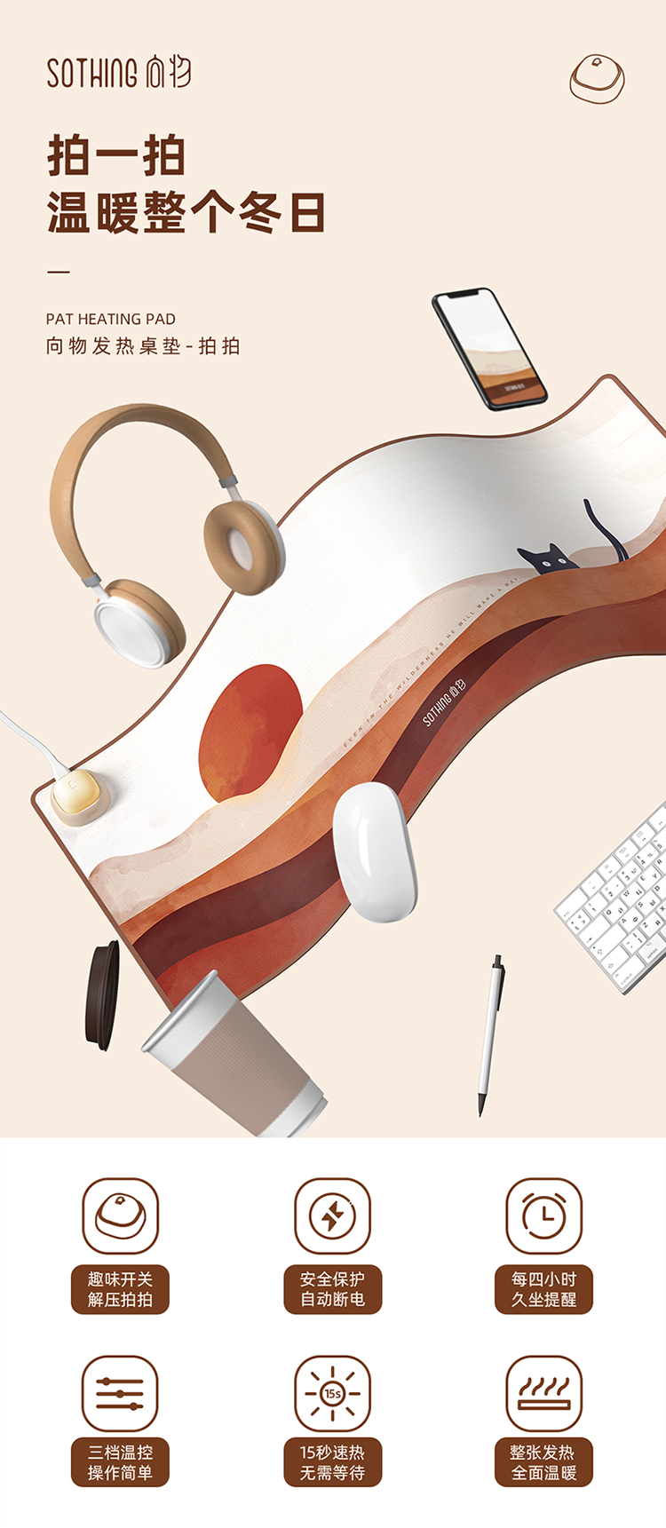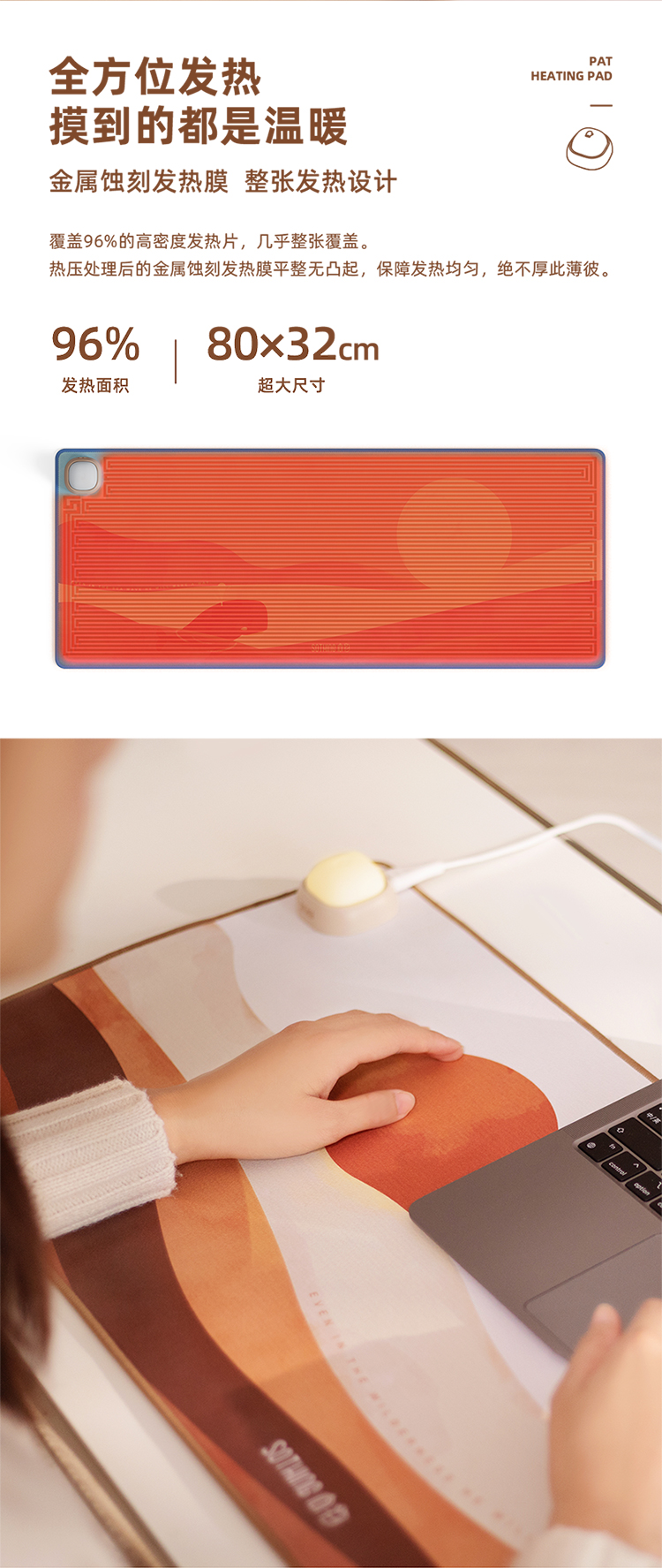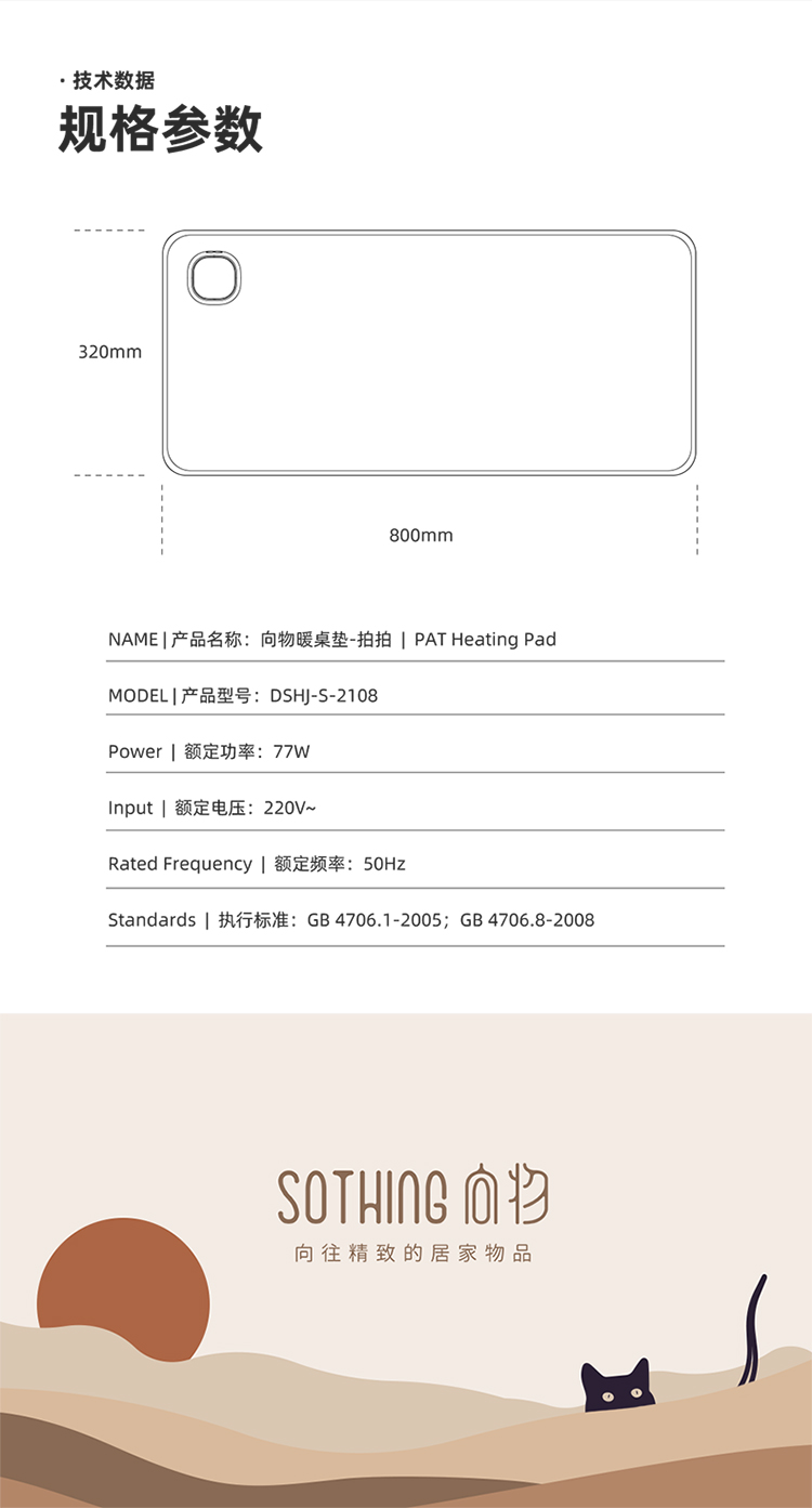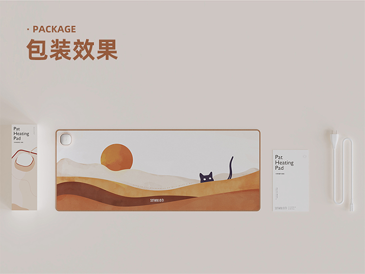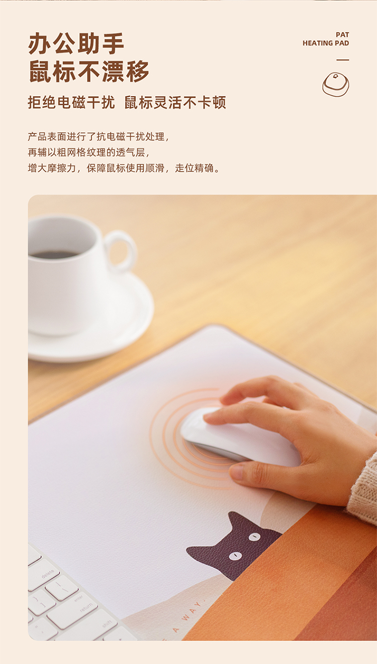 商品名称:(中合誉品)向物(SOTHING)加热桌垫发热鼠标垫大号暖桌垫电热桌垫学生写字办公电脑桌面暖手 【拍拍款】日落猫-整面发热