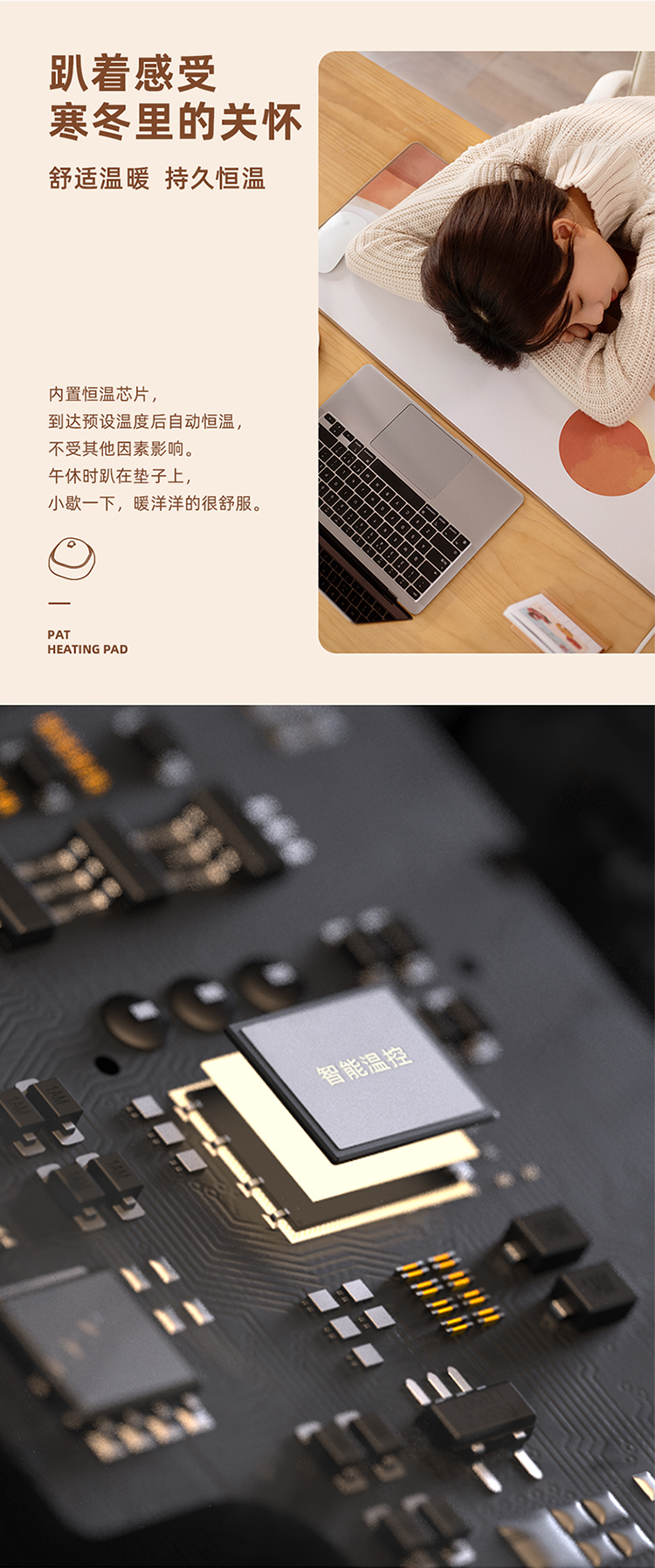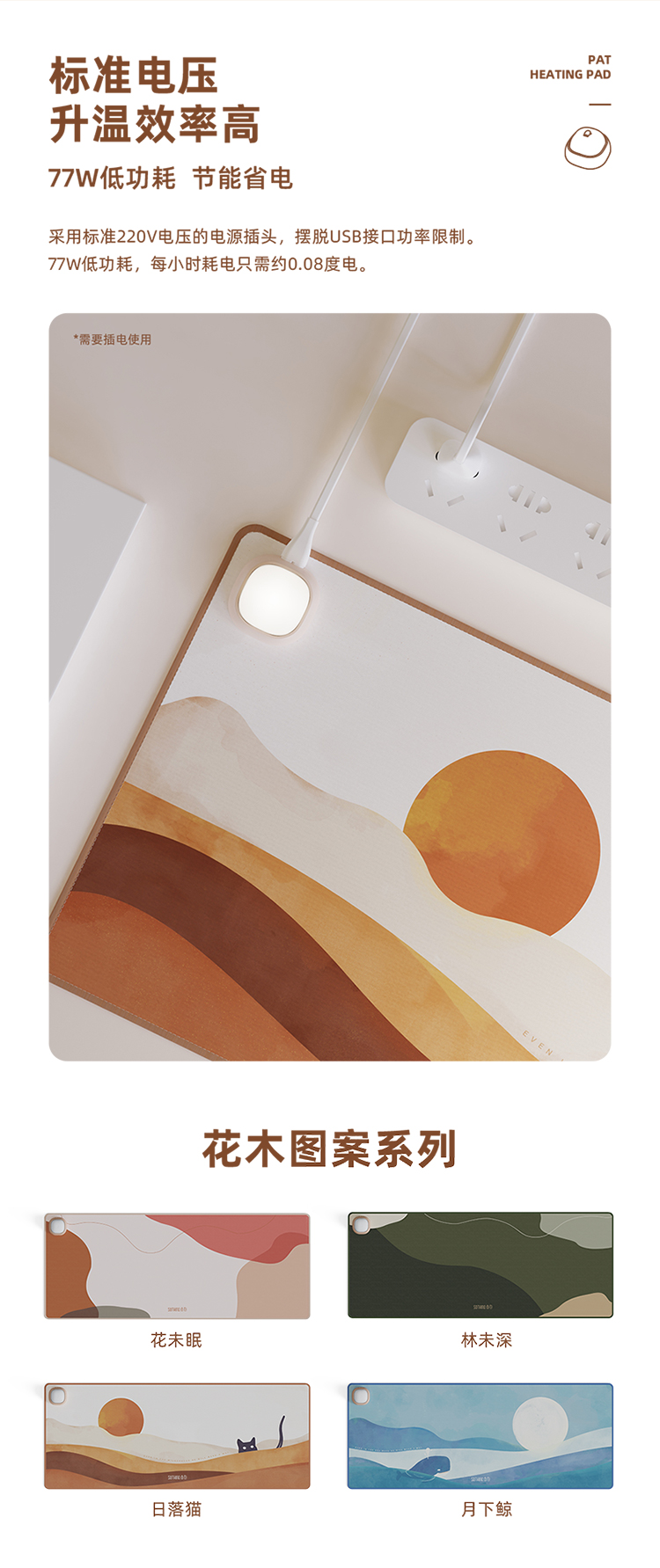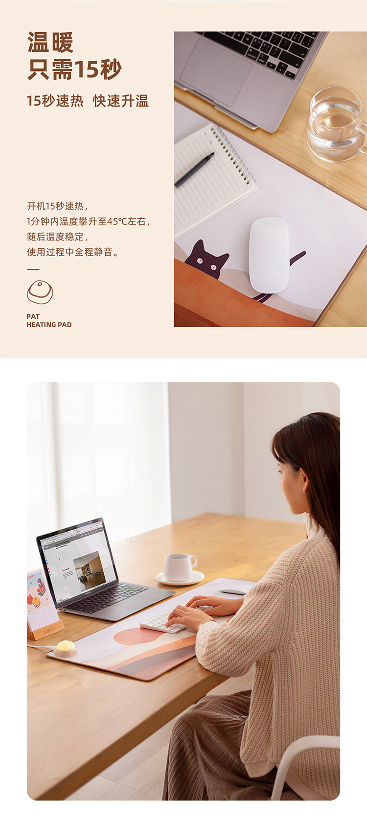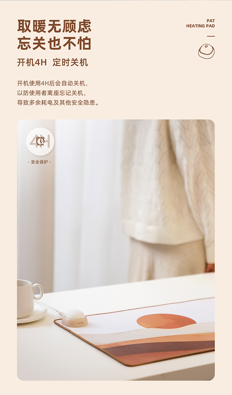 商品名称:(中合誉品)向物(SOTHING)加热桌垫发热鼠标垫大号暖桌垫电热桌垫学生写字办公电脑桌面暖手 【拍拍款】日落猫-整面发热