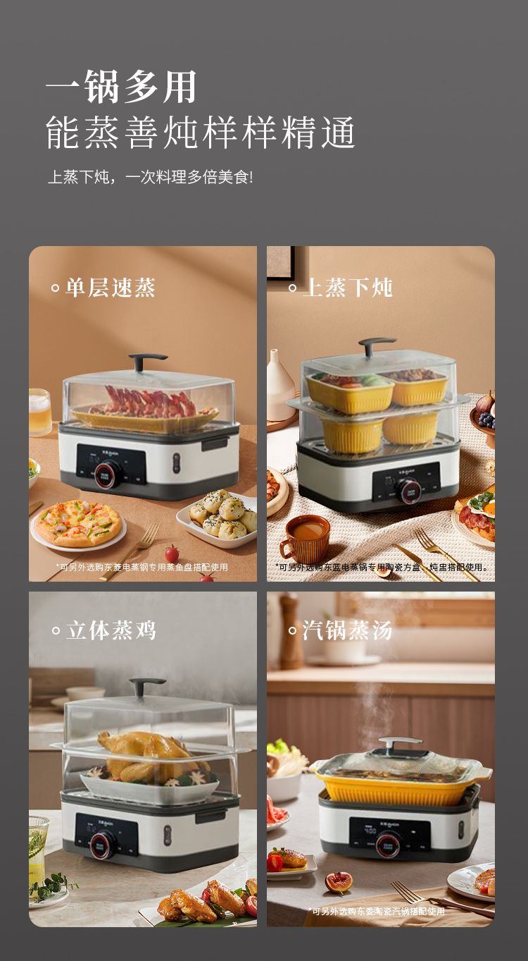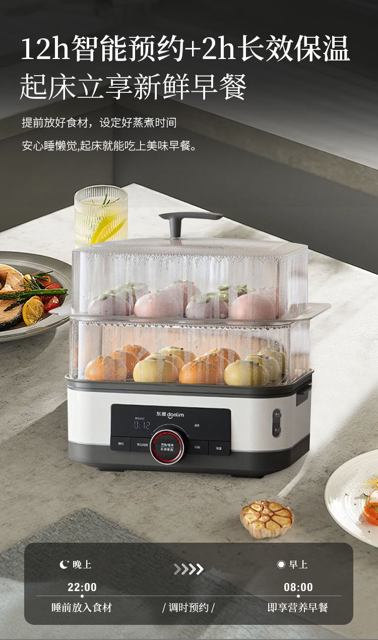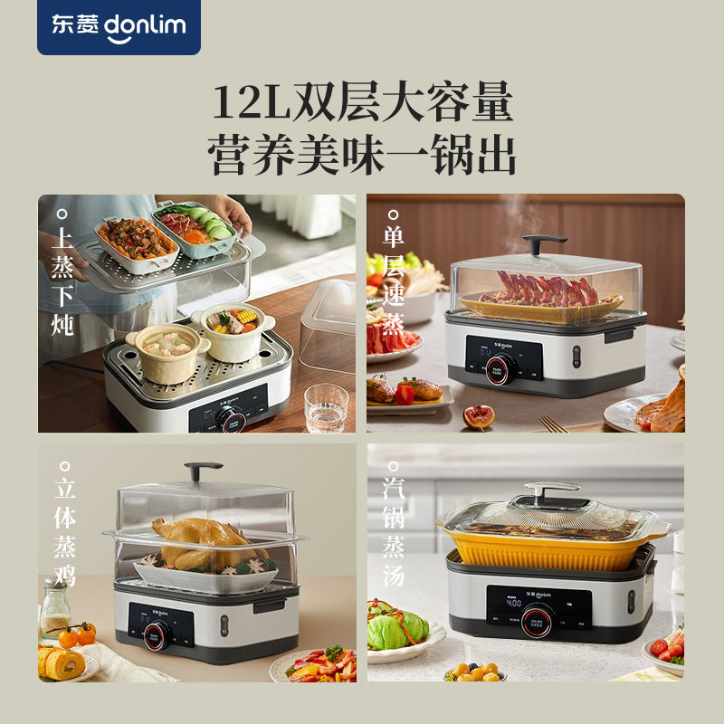 商品名称:(巨邦佑)T+东菱(Donlim)电蒸锅双层家用可预约电煮锅蒸煮炖一体上蒸下炖自动保温多功能汽锅DL-F1 可视速蒸-电蒸锅