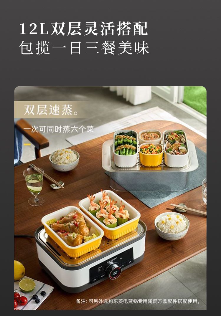(巨邦佑)T+东菱(Donlim)电蒸锅双层家用可预约电煮锅蒸煮炖一体上蒸下炖自动保温多功能汽锅DL-F1 可视速蒸-电蒸锅