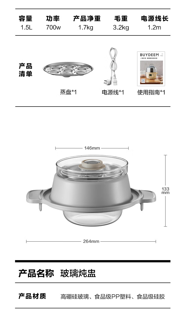 商品名称:(巨邦佑)R+北鼎多功能蒸炖锅G37(1500ml)智能迷你锅(下单前备注颜色或联系客服)