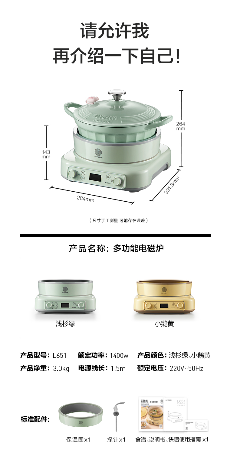 商品名称:(巨邦佑)R+北鼎 电磁炉L651 1400W电陶炉多功能一体家用全自动节能小型灶恒温匀火烹饪一键预约(下单前备注颜色或联系客服)