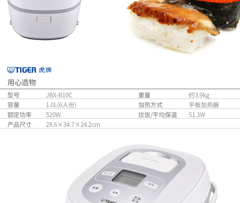 商品名称:(超运·禾贸)TIGER 虎牌日本进口微电脑电饭煲JBX-B10C白色