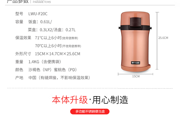 商品名称:(超运·禾贸)TIGER 虎牌保温便当盒LWU-F20C沙褐色