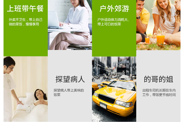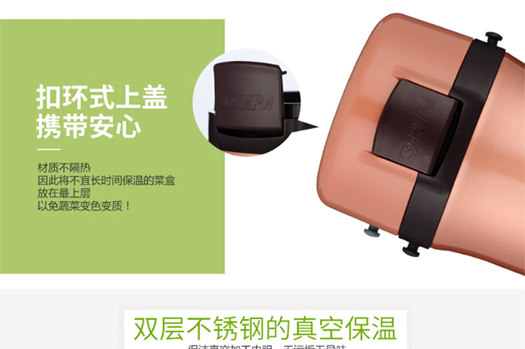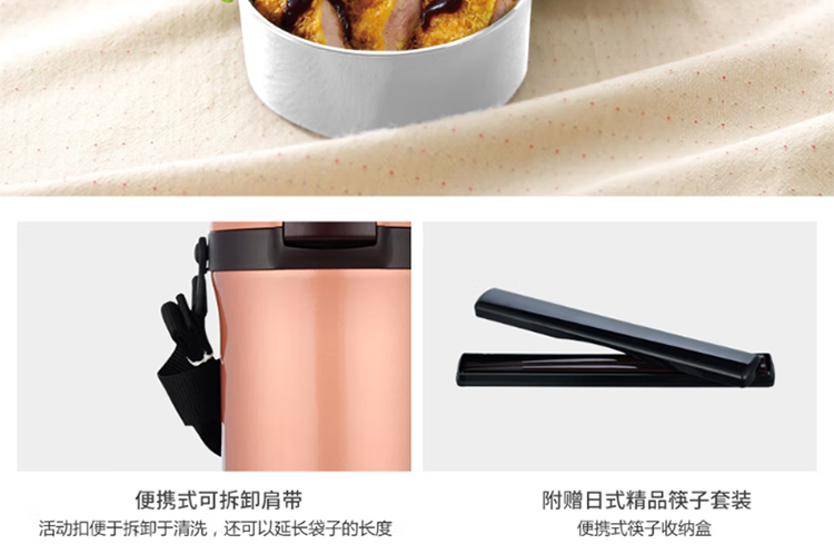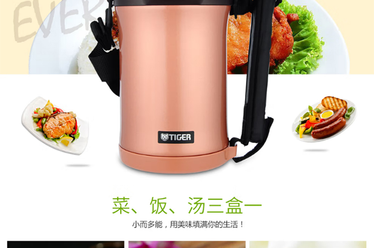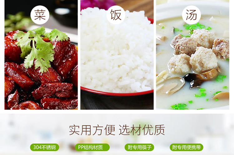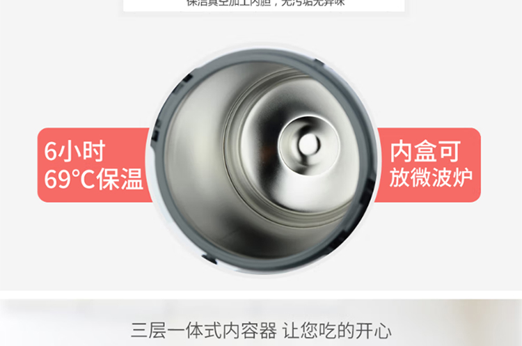 容量饭盒:0.61L/ 菜盒:0.3LX2/ 汤盒:0.27L 保温效果:71℃以上6小时(使用便携带)