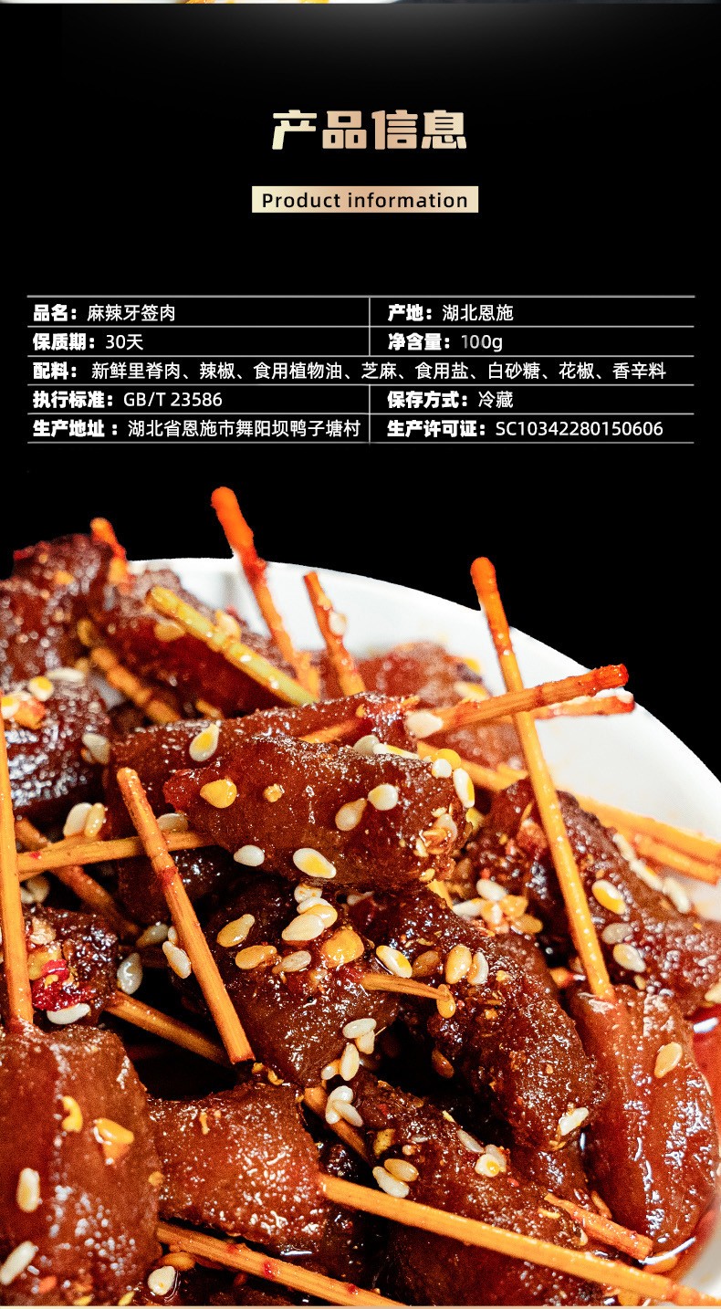商品名称:(巨邦佑)BJ+梅小菜麻辣牙签肉100g*2 麻辣鲜香小吃零食