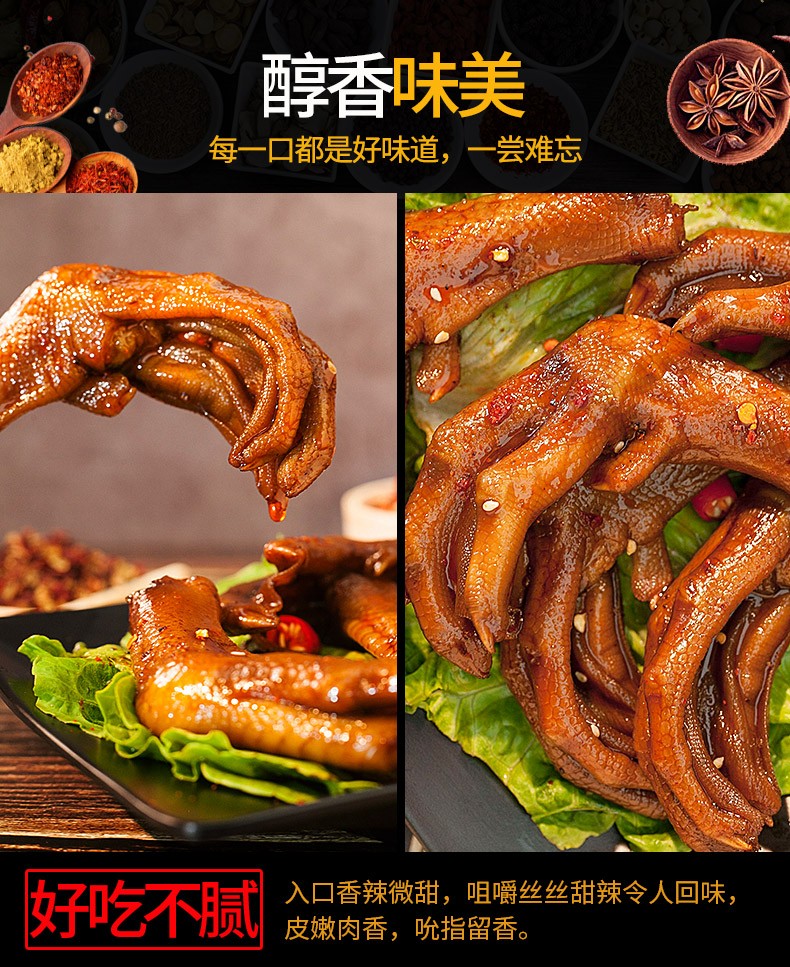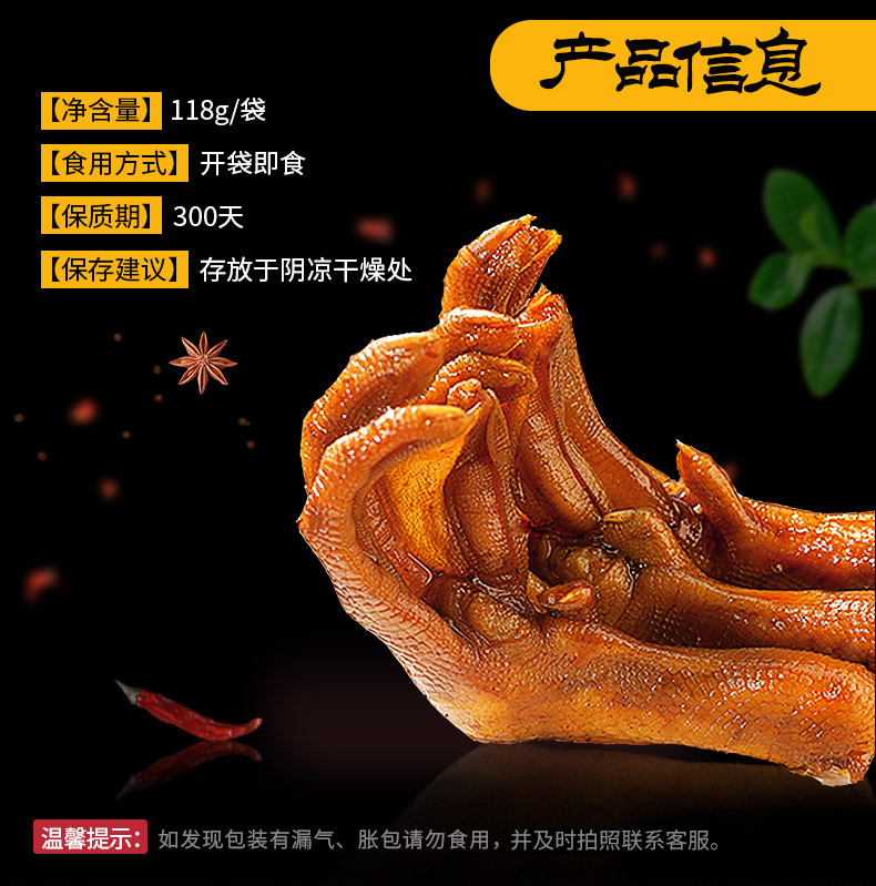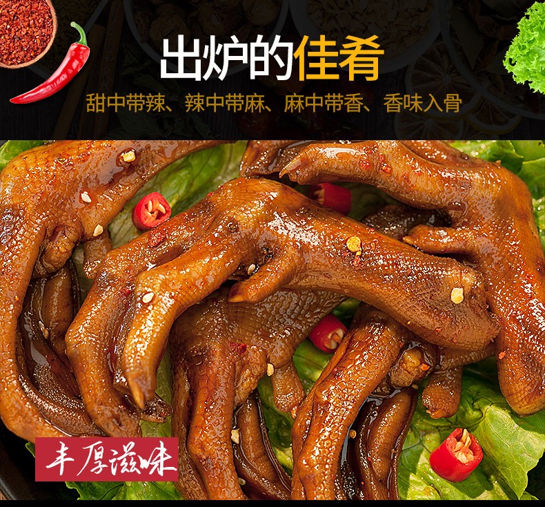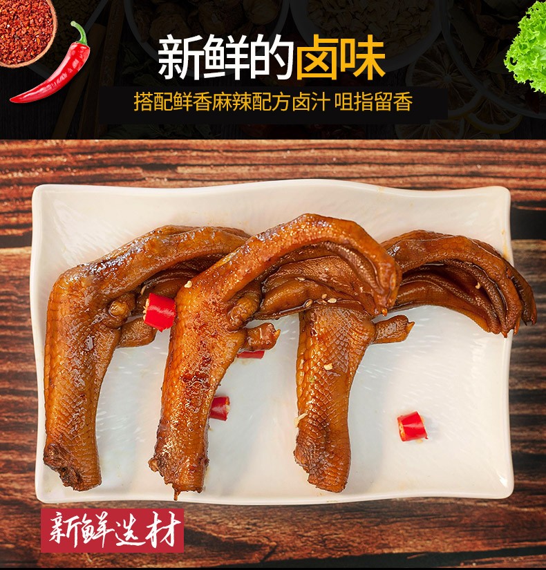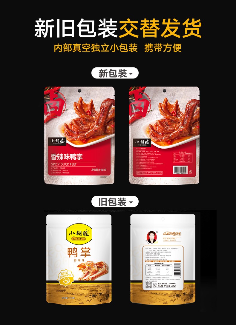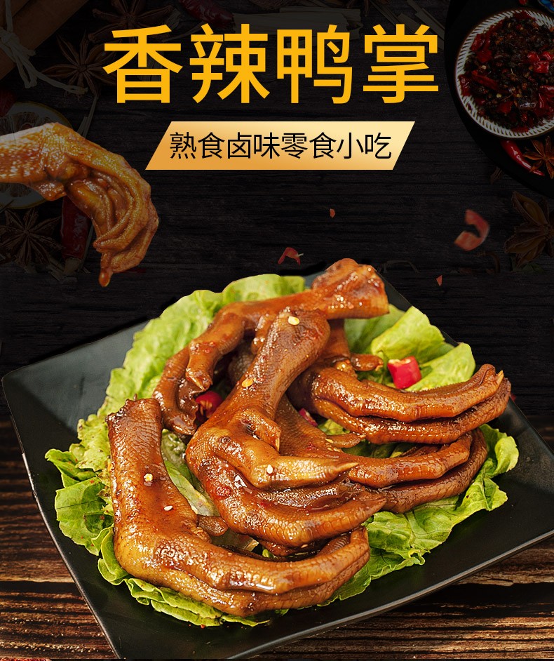商品名称:(巨邦佑)BJ+小胡鸭香辣味鸭掌118g*2 卤味即食零食
