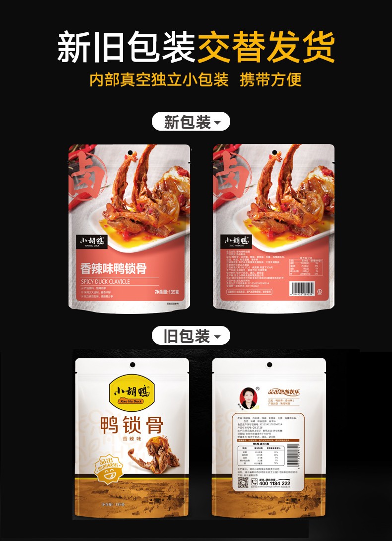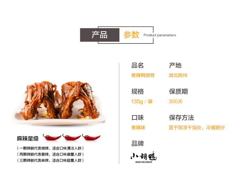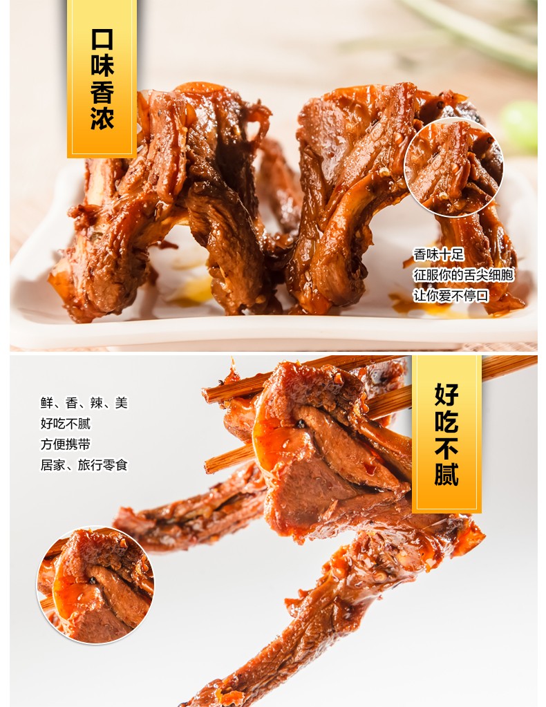 商品名称:(巨邦佑)BJ+小胡鸭香辣味鸭锁骨135g*2 卤味即食零食