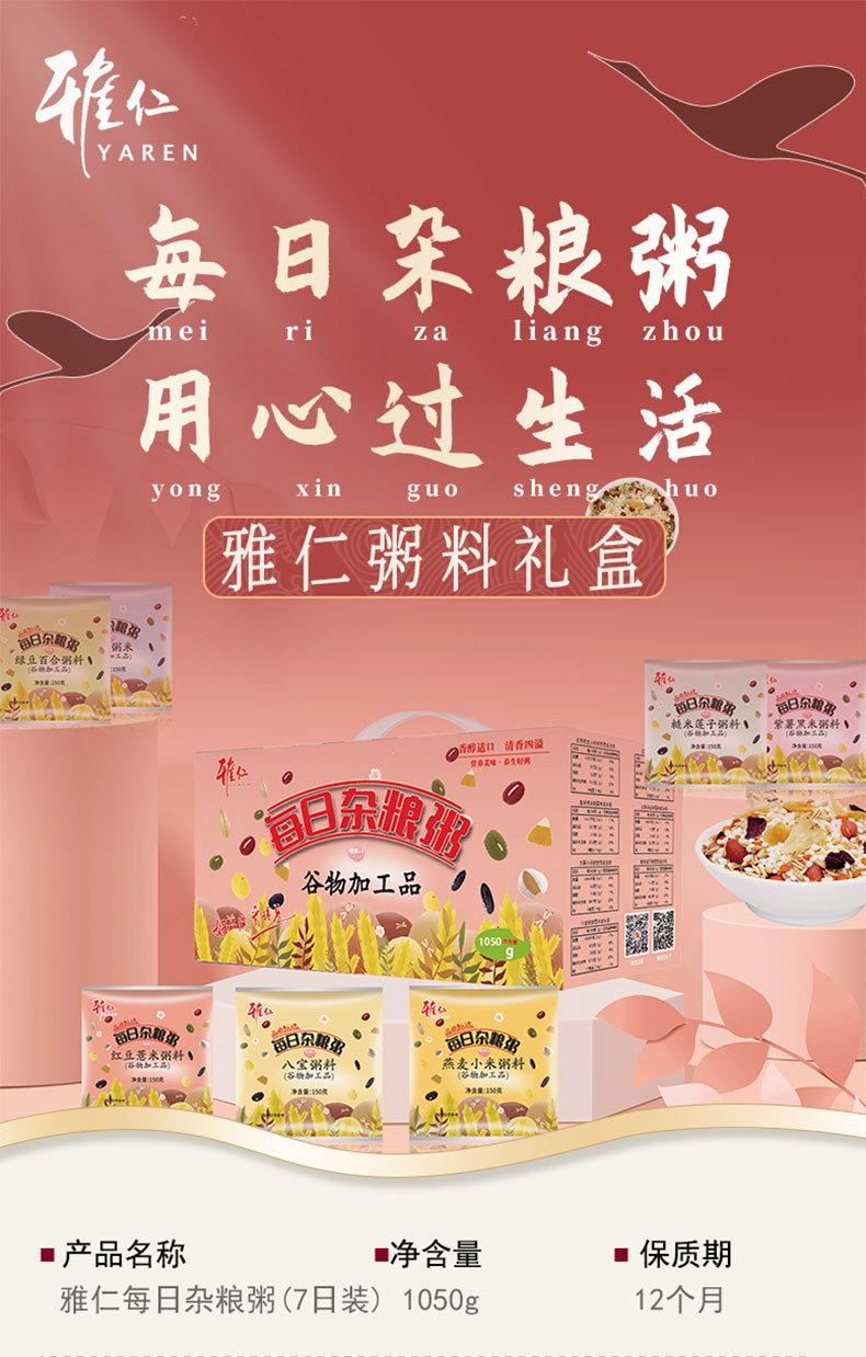 商品名称:(巨邦佑)BJ+雅仁每日杂粮粥(7日装)1050g 7种粥料营养丰富