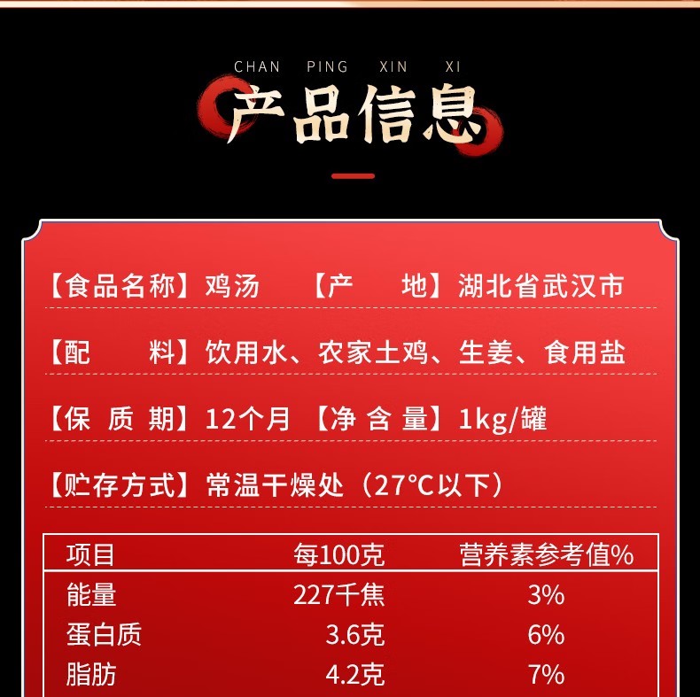 商品名称:(巨邦佑)R+银莲湖鸡汤1000gX2罐月子方便速食汤 火锅食材 武汉新洲特产