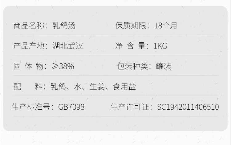 商品名称:(巨邦佑)R+银莲湖乳鸽汤1000x2罐 月子滋补加热即食罐头 武汉特产 乳鸽汤【礼盒】
