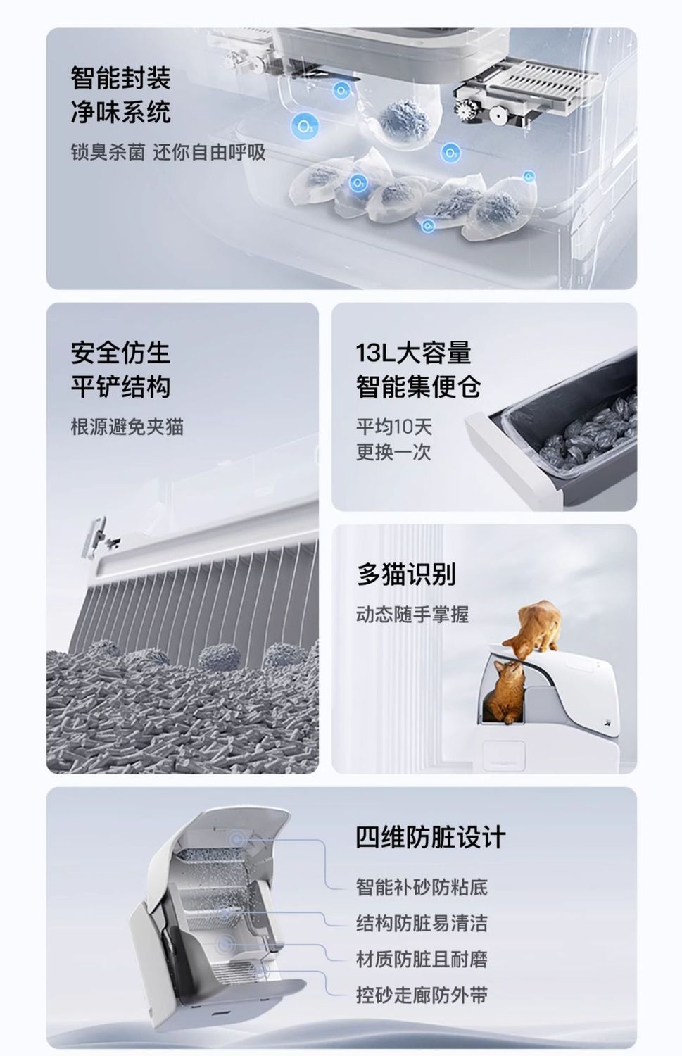 商品名称:(巨邦佑)T+3i全自动智能猫砂盆封装净味猫砂舱隔臭杀菌电动猫厕所防脏不夹猫不翻到