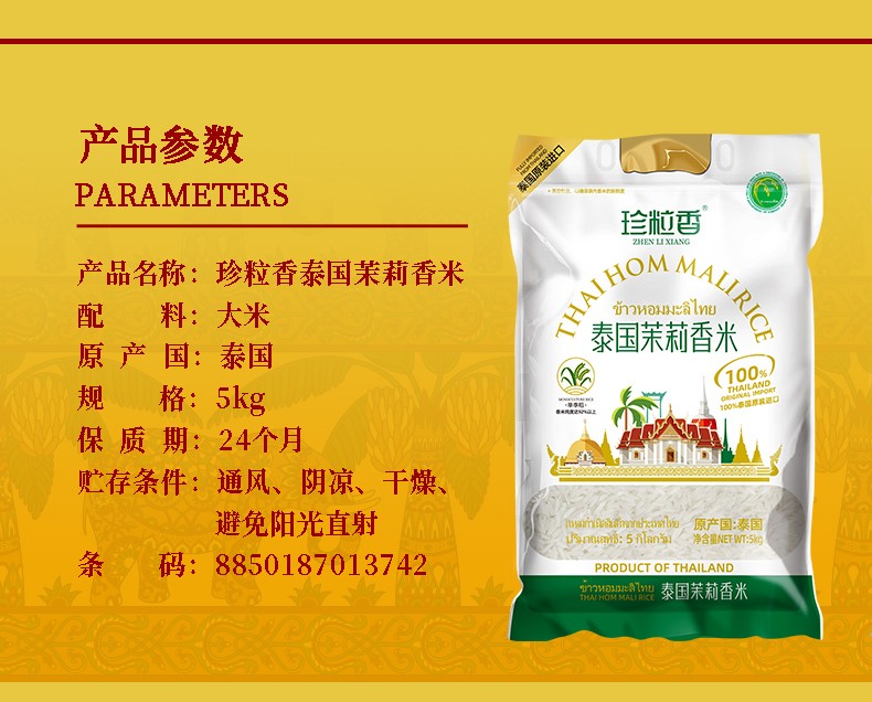 商品名称:(世星阳光)珍粒香泰国茉莉香米白金款5kg 原装进口
