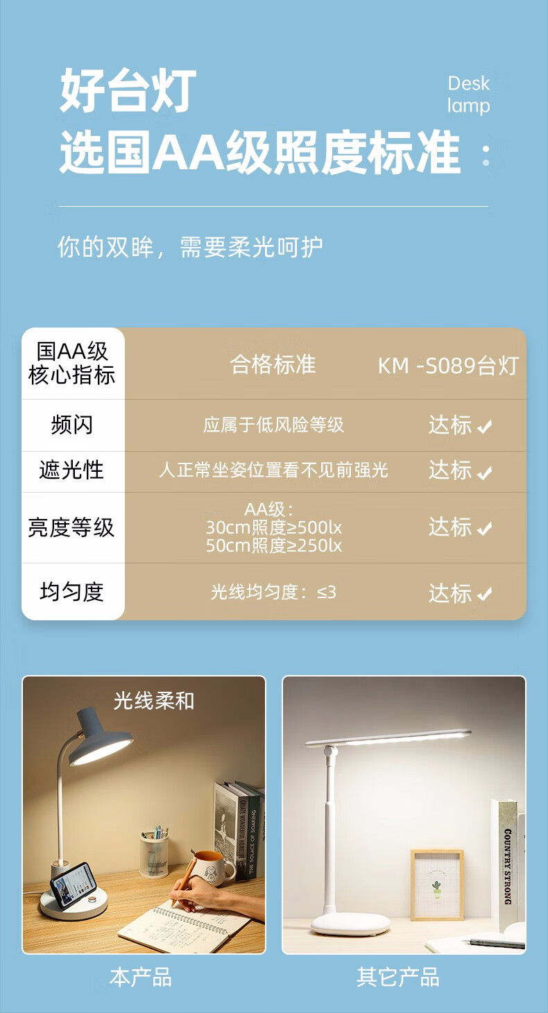 商品名称:(巨邦佑)R+康铭台灯KM-S089led国AA级护眼学习学生儿童家用书房阅读寝室减蓝光读写灯