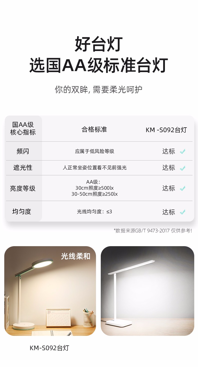 商品名称:(巨邦佑)R+康铭台灯KM-S092led国AA级学生儿童学习护眼专用减蓝光床头书房书桌读写灯