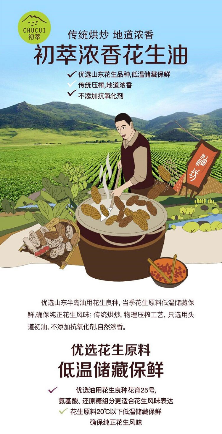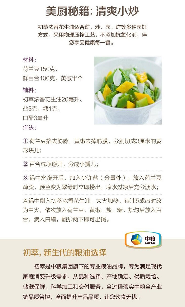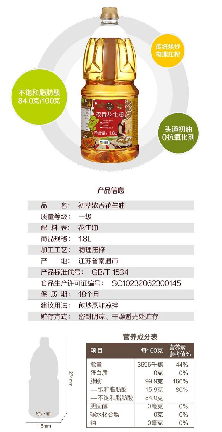 商品名称:(中合誉品)初萃浓香花生油1.8L 食用油 物理压榨 压榨一级