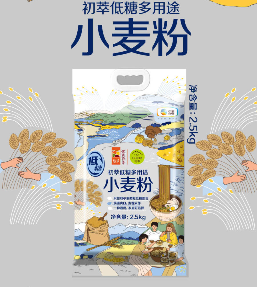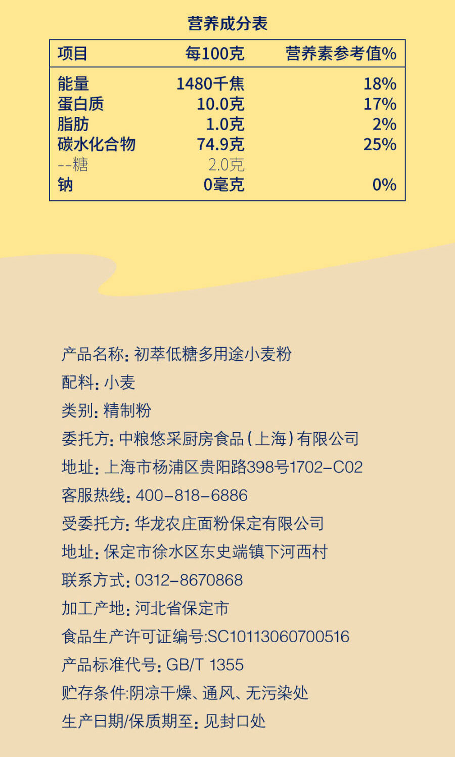 商品名称:(中合誉品)初萃低糖多用途小麦粉2.5kg 中筋面粉