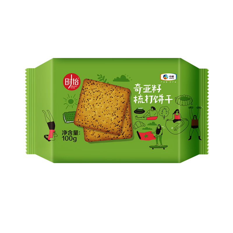 商品名称:(中合誉品)时怡奇亚籽梳打饼干100g 办公室饱腹零食苏打饼干
