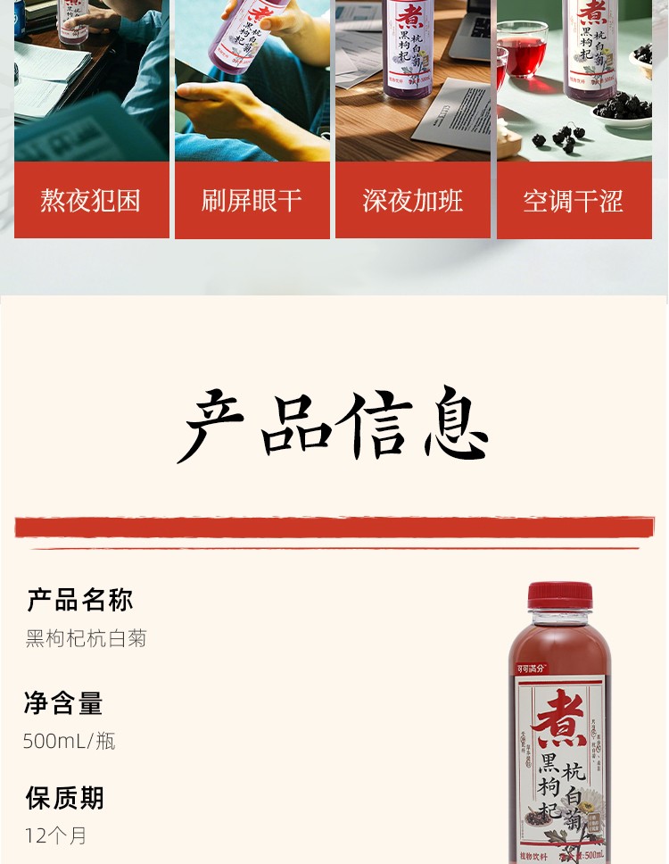 商品名称:(世星阳光)可可满分黑枸杞杭白菊500ml*5 饮品 低糖中式茶 0脂肪无负担 植物果汁饮料