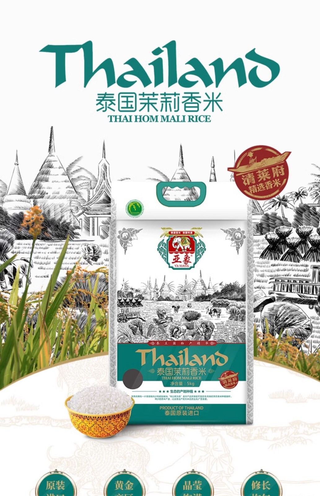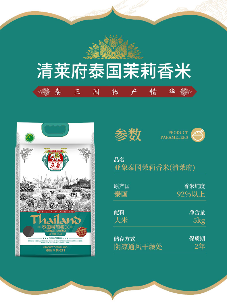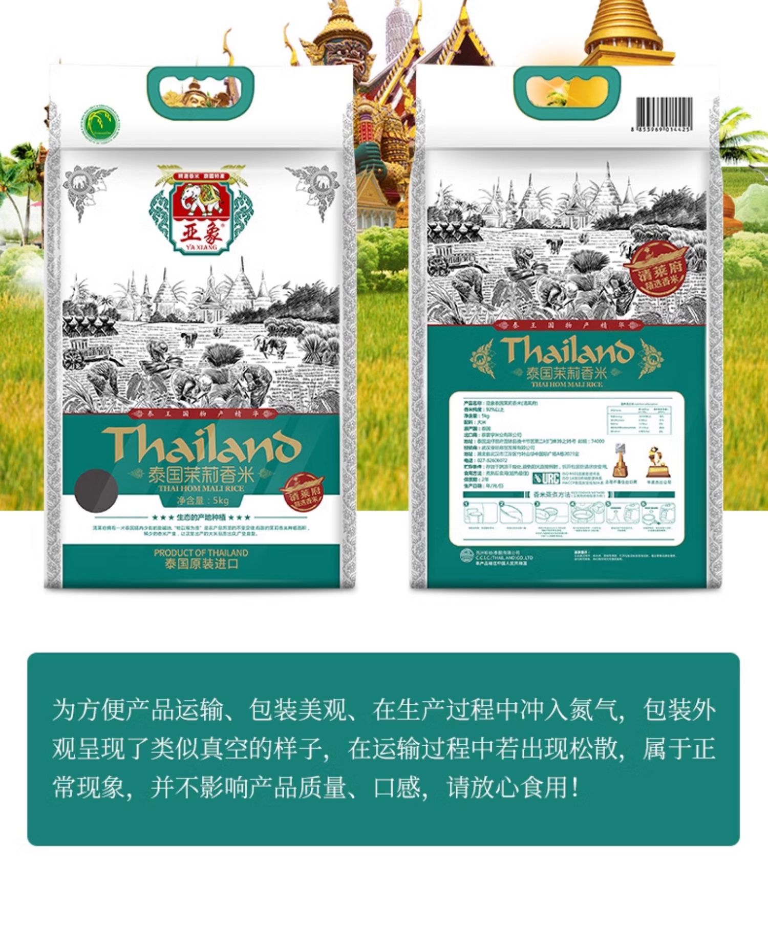 商品名称:(巨邦佑)BJ+亚象泰国清莱府茉莉香米5kg 原装进口大米香米10斤长粒泰米
