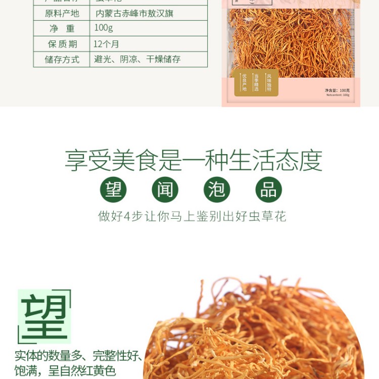 商品名称:(巨邦佑)BJ+绿岛湖虫草花100g*2 干虫草汤伴侣南北干货