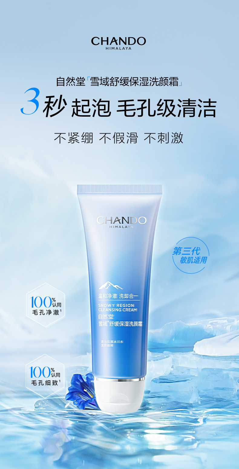(世星阳光)自然堂雪域精粹洗颜霜125g 深层清洁净彻毛孔温和滋润