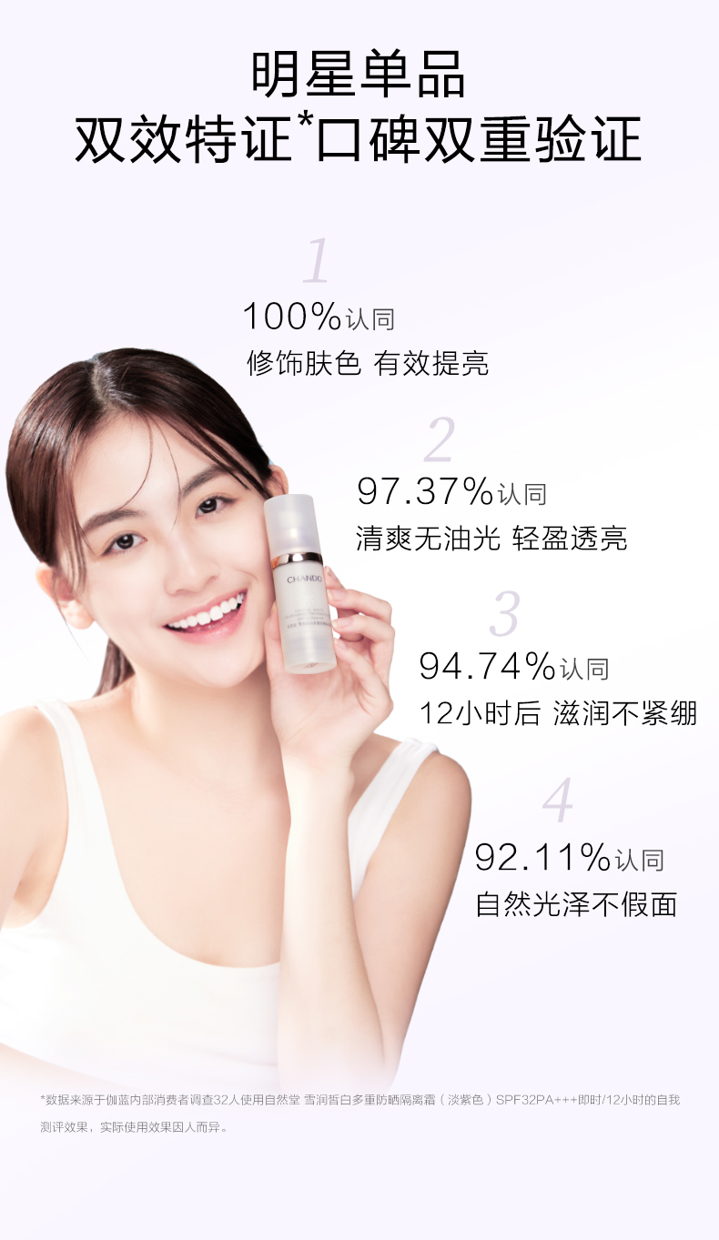 (世星阳光)自然堂雪润皙白多重防晒隔离霜(淡紫色)SPF32PA+++ 30ml 多效合一 快速出门 滋润打底 上脸不拔干 底妆更服贴 特调保湿配方 滋润亲肤