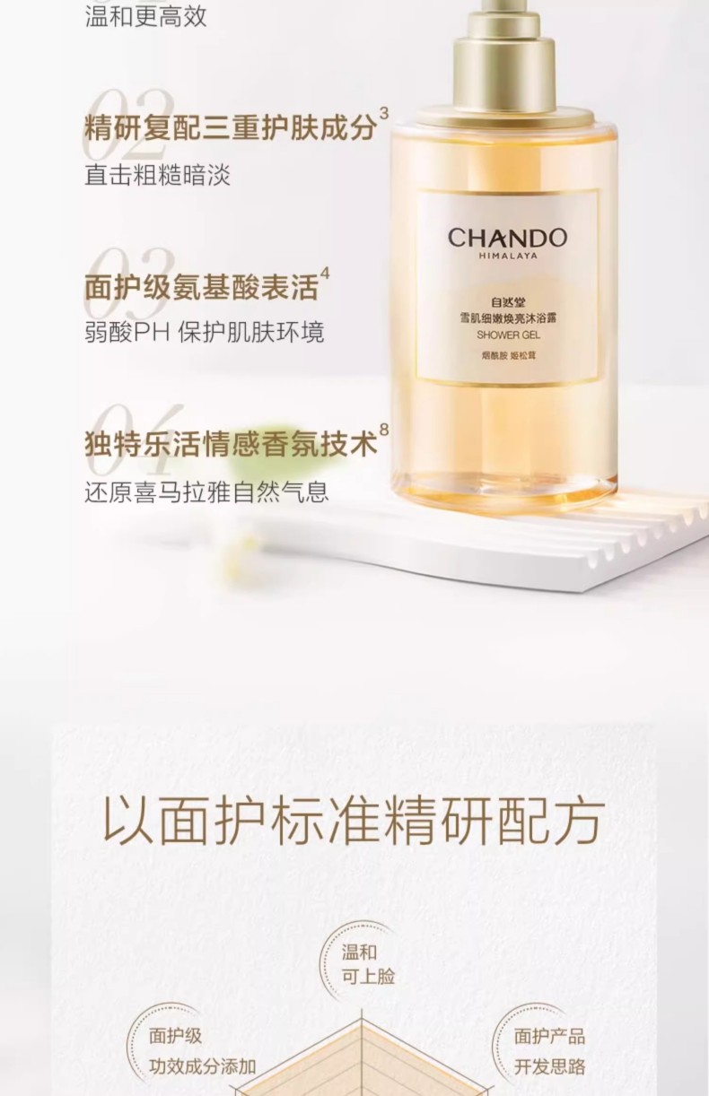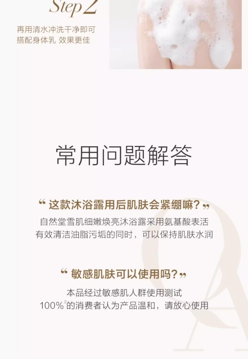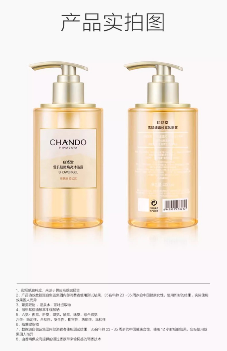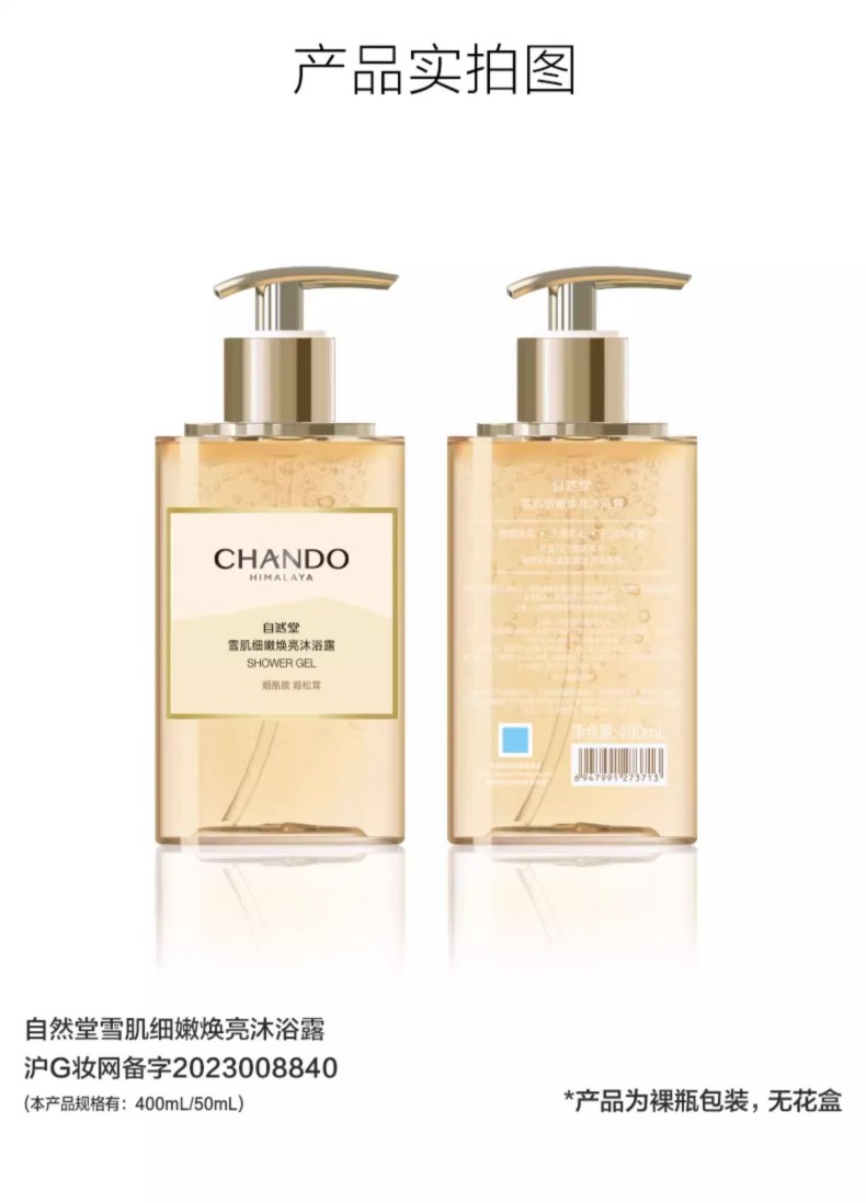 商品名称:(世星阳光)自然堂雪肌细嫩焕亮沐浴露/舒缓水润保湿沐浴露400mL 12小时留香 细嫩焕亮 面护级配方 温和不刺激 不紧绷 不假滑