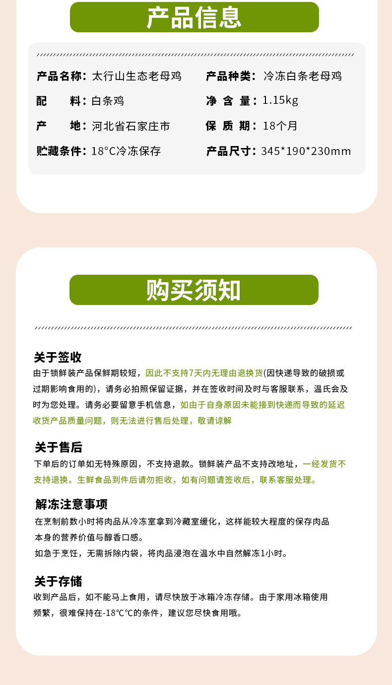 商品名称:(巨邦佑)R+小鸡海蒂生态老母鸡1.15kg*1只太行山散养老母鸡500天生态走地鸡送礼佳品 冷冻发货月子鸡汤