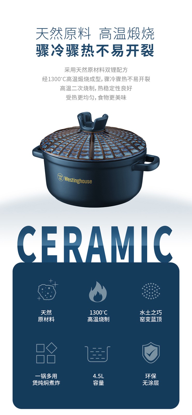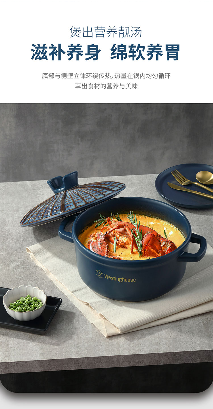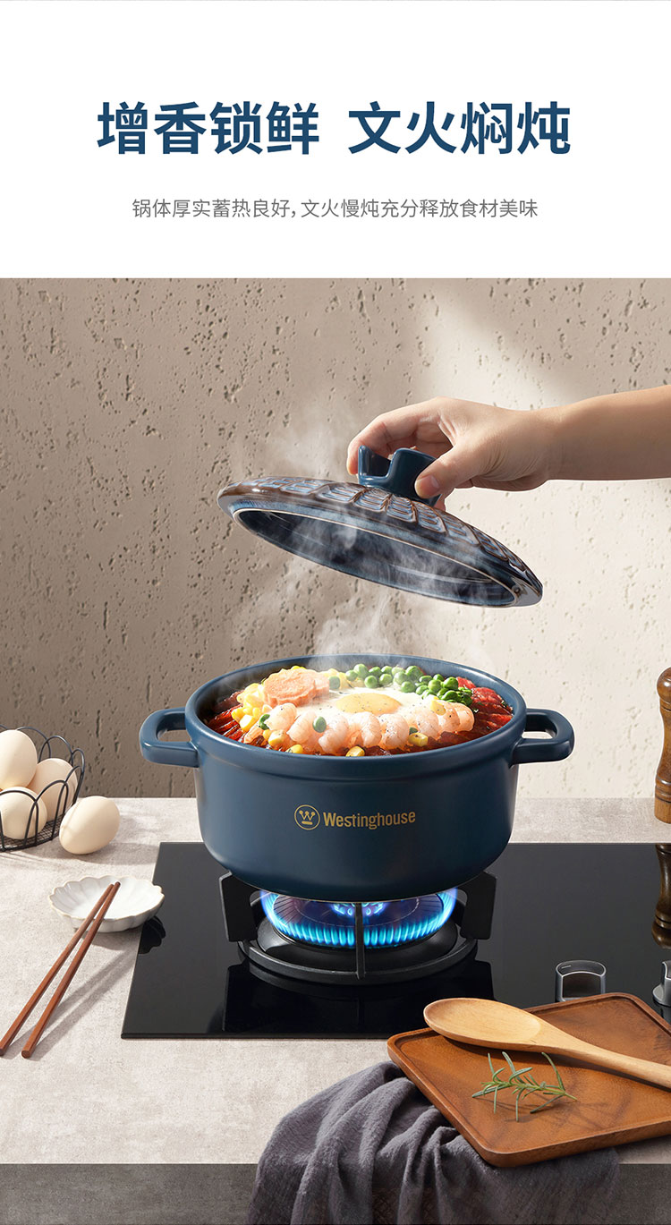 (世星阳光)+WY西屋 陶瓷锅 4.5L WTTG45A 天然原料 高温煅烧 骤冷骤热 不易开裂