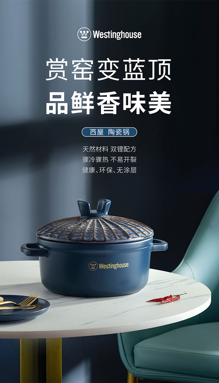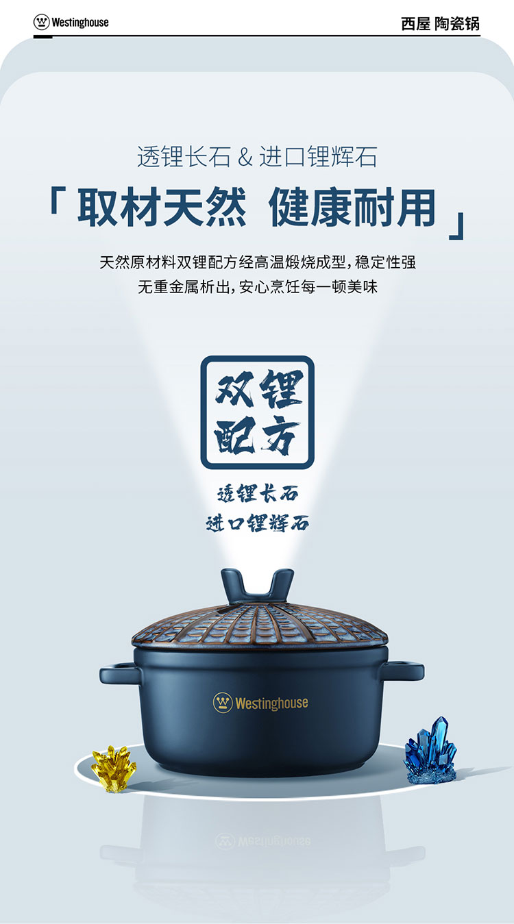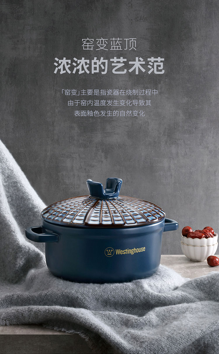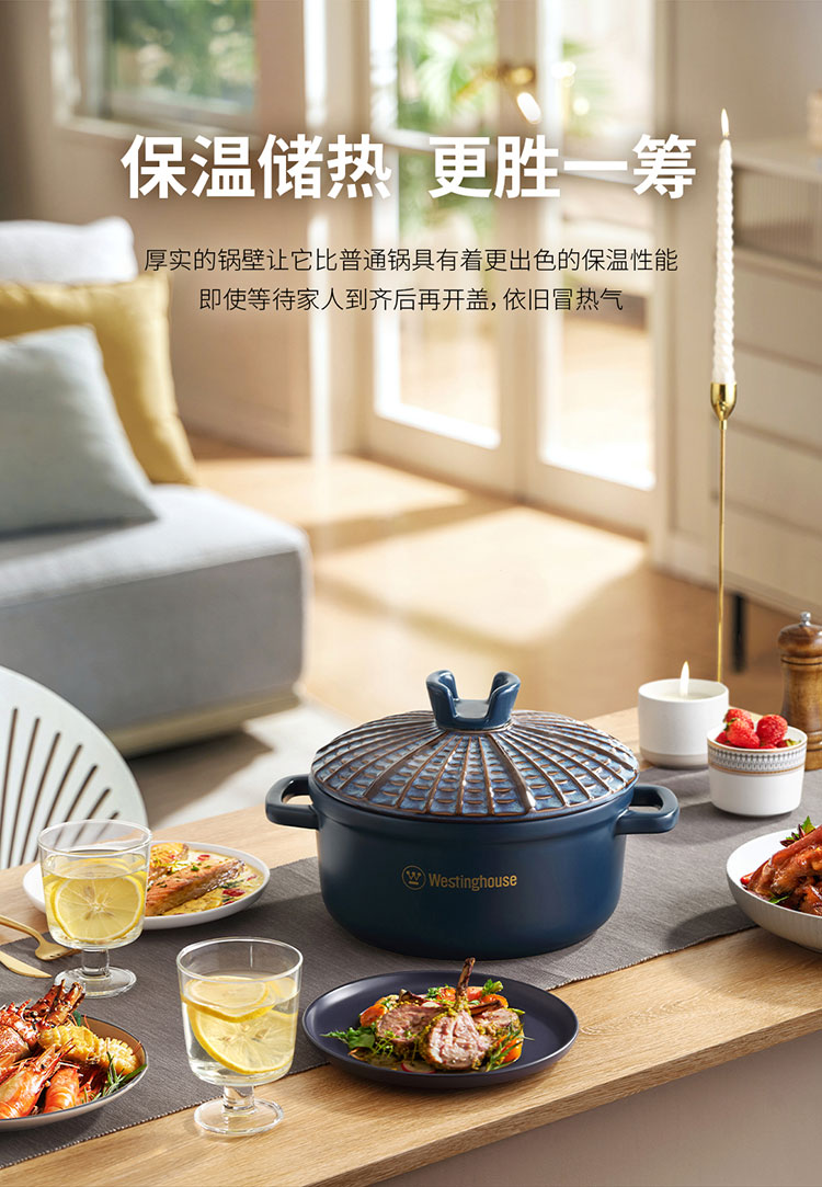 (世星阳光)+WY西屋 陶瓷锅 4.5L WTTG45A 天然原料 高温煅烧 骤冷骤热 不易开裂