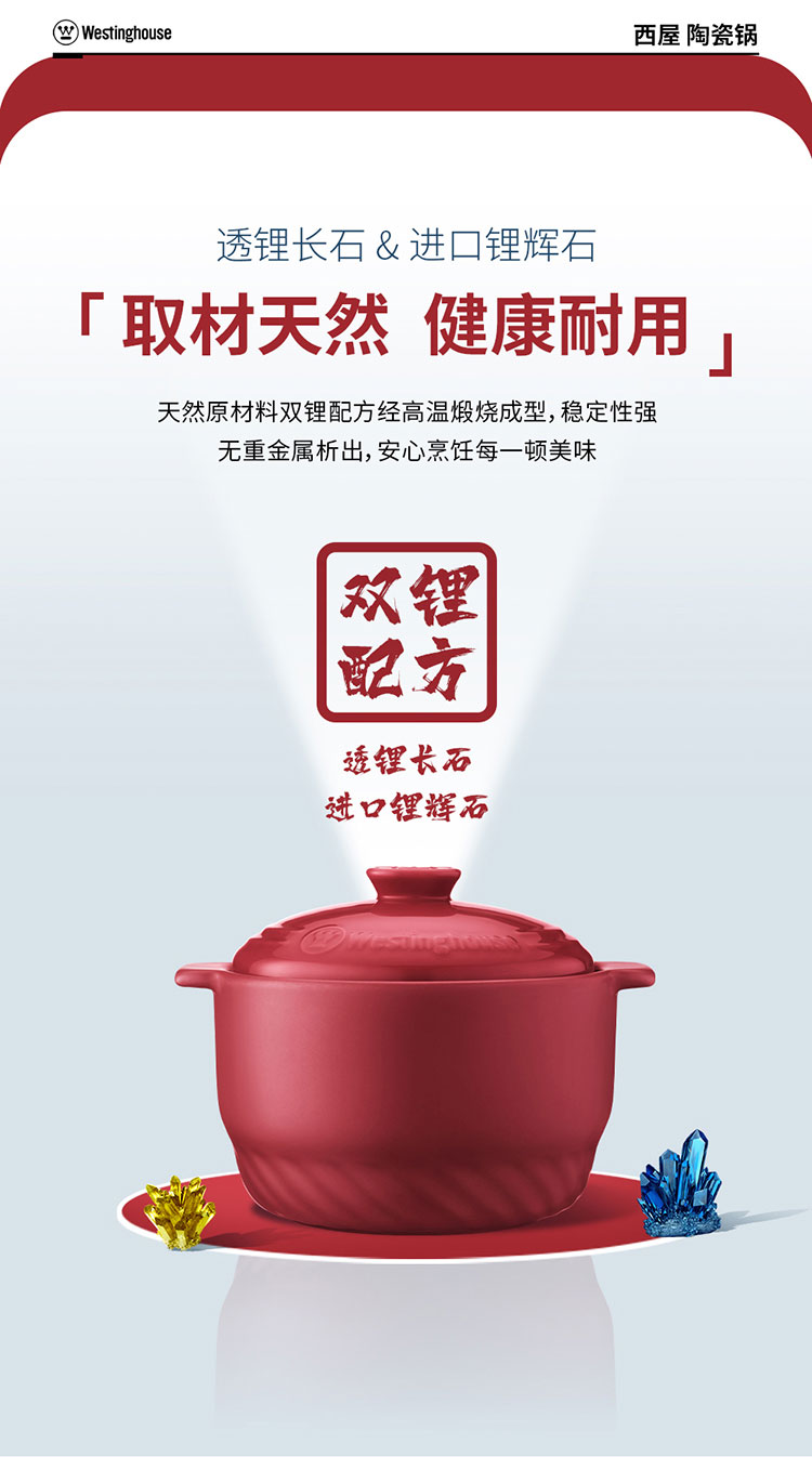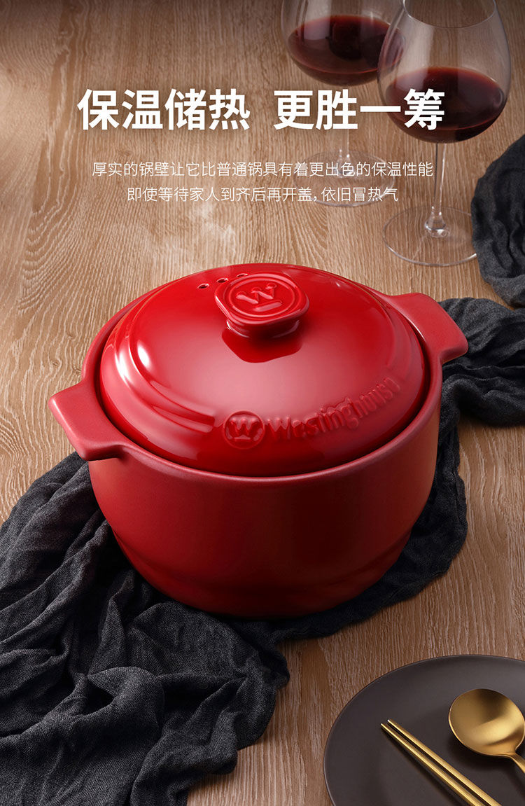 (世星阳光)+WY西屋 陶瓷锅 4.5L WTG451 骤冷骤热 不易开裂 无重金属析出 安心烹饪每一顿美味