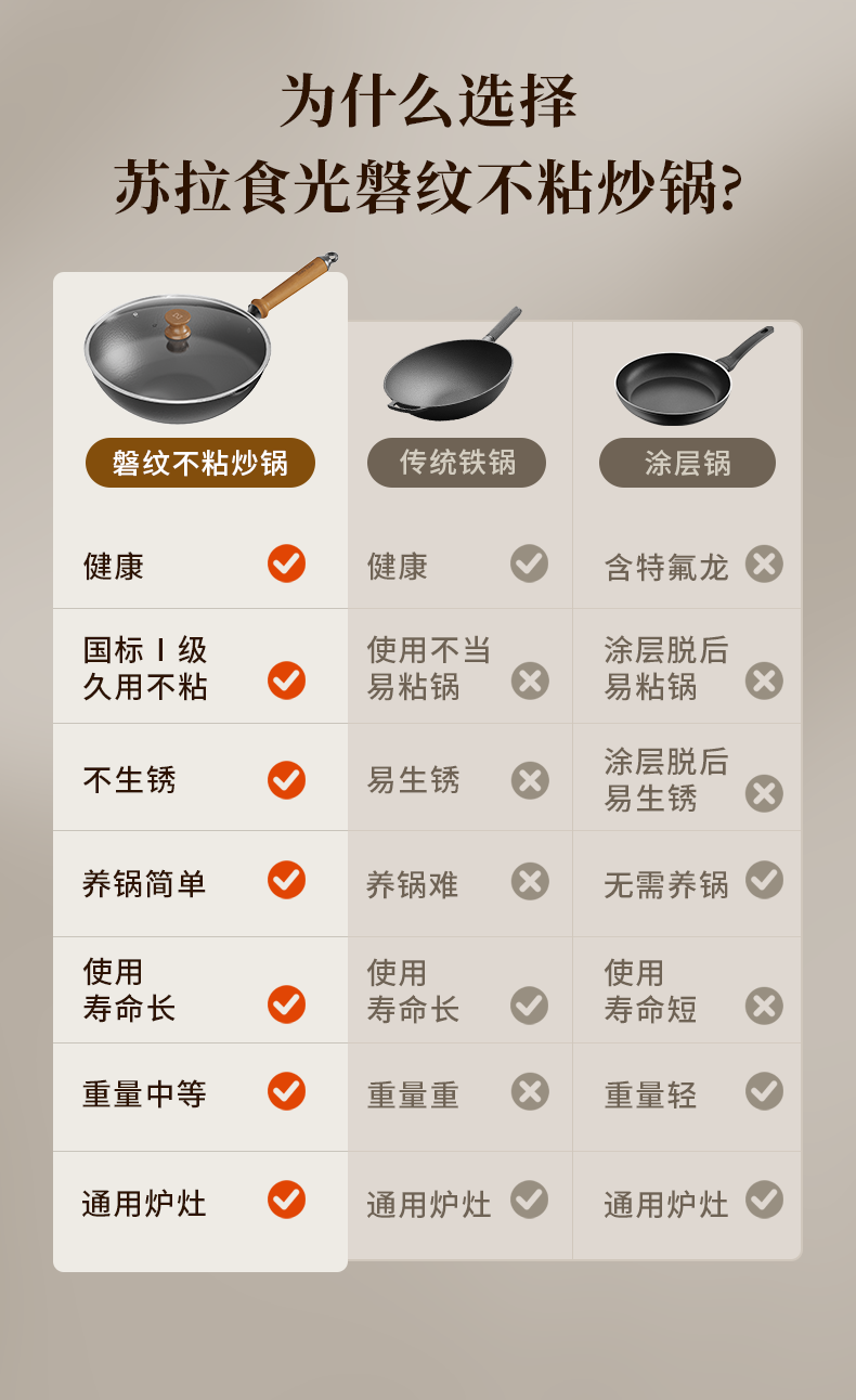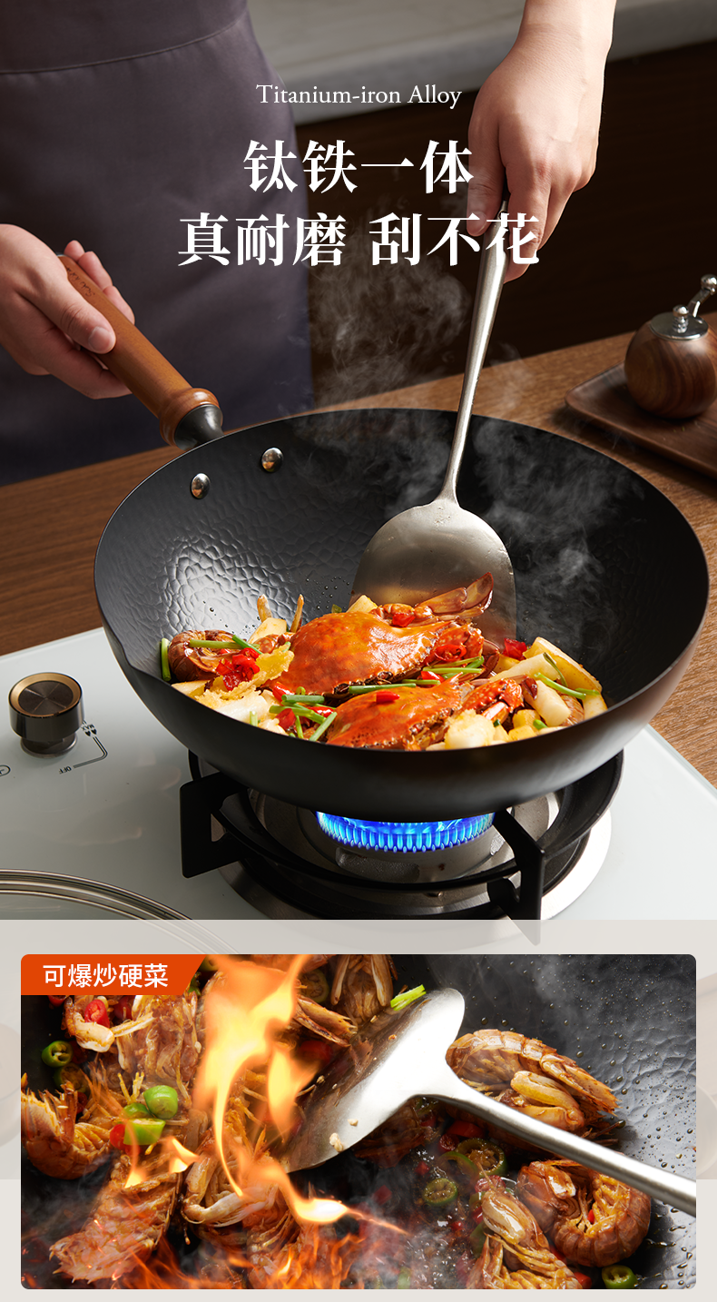 (世星阳光)+WY苏拉食光 磐纹不粘炒锅32cm SL-CT32F1 深层氮氧技术 铁锅提升6倍防锈能力