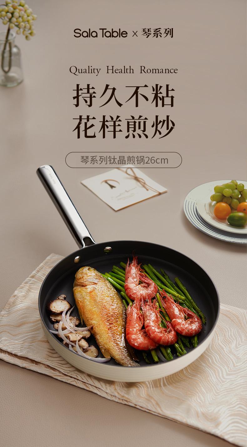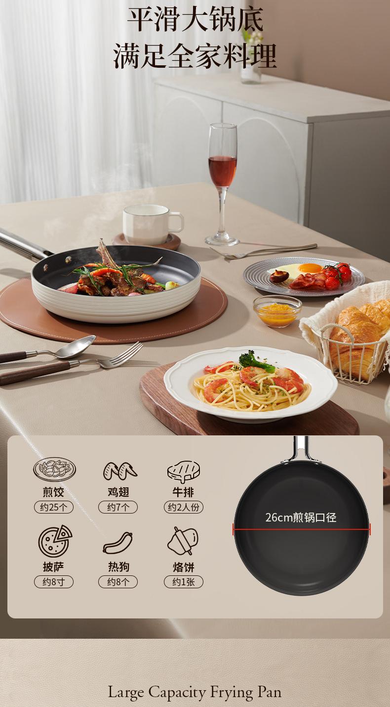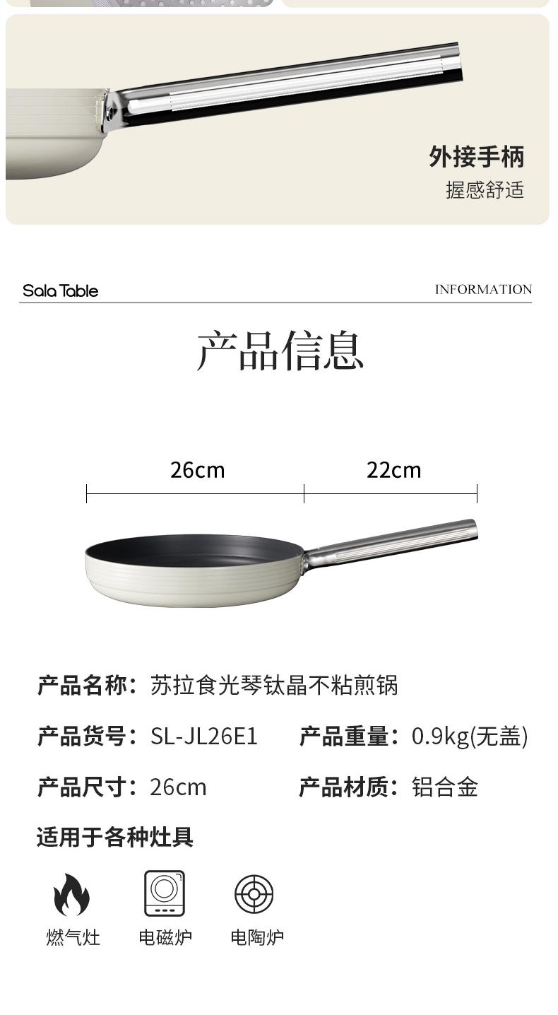 商品名称:世星阳光)+WY苏拉食光 琴钛晶不粘煎锅弦乐白26cm SL-JL26E1 钛晶石 不粘层 光滑陶瓷表面 易清洗