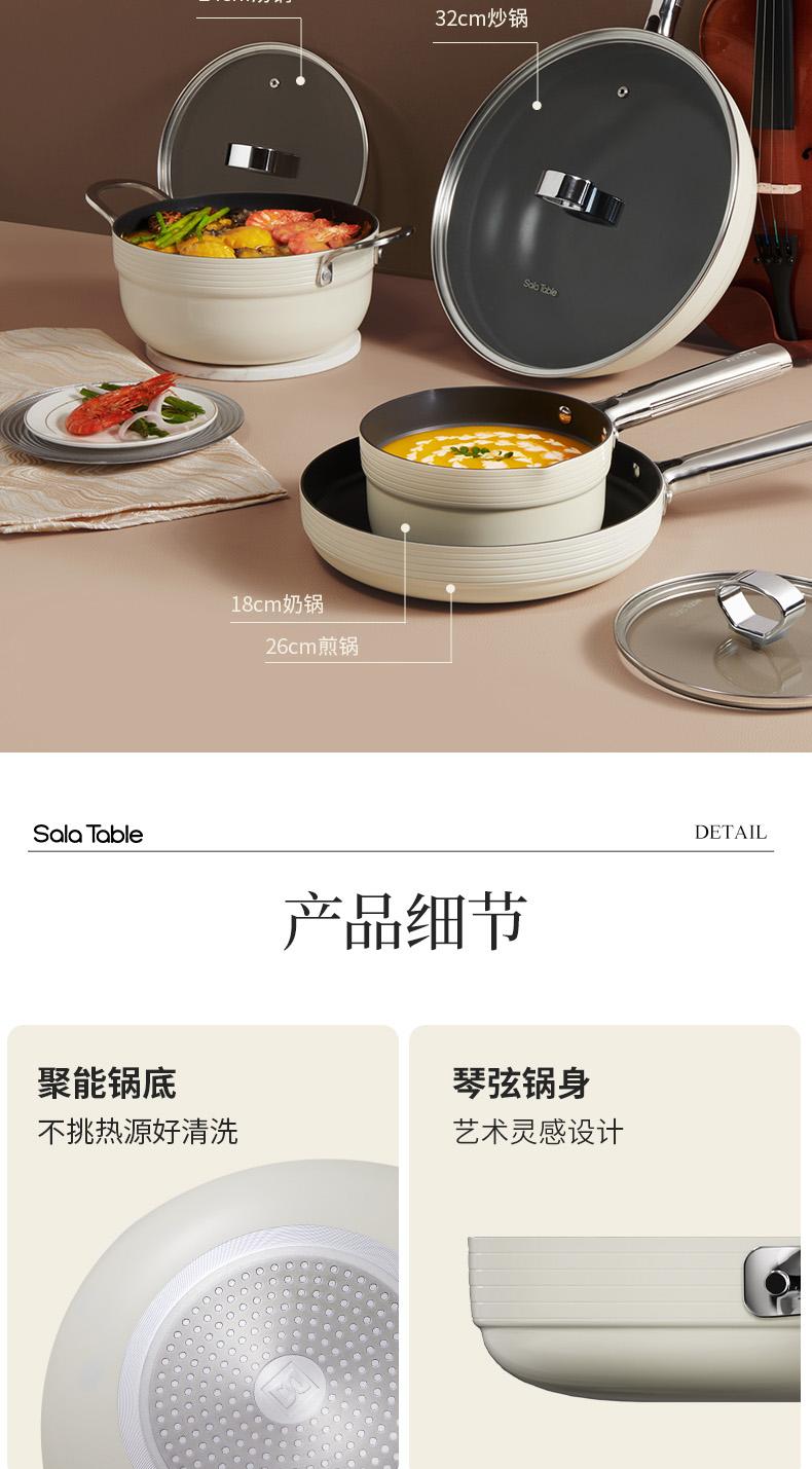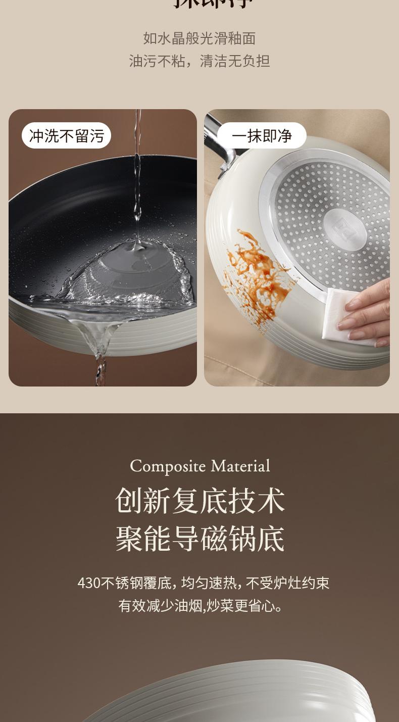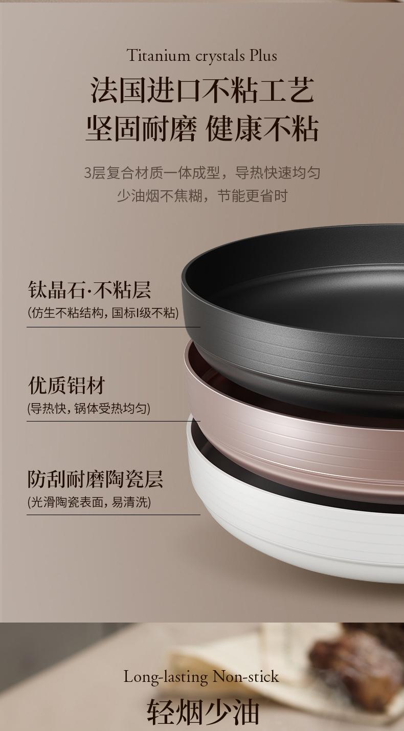 商品名称:世星阳光)+WY苏拉食光 琴钛晶不粘煎锅弦乐白26cm SL-JL26E1 钛晶石 不粘层 光滑陶瓷表面 易清洗