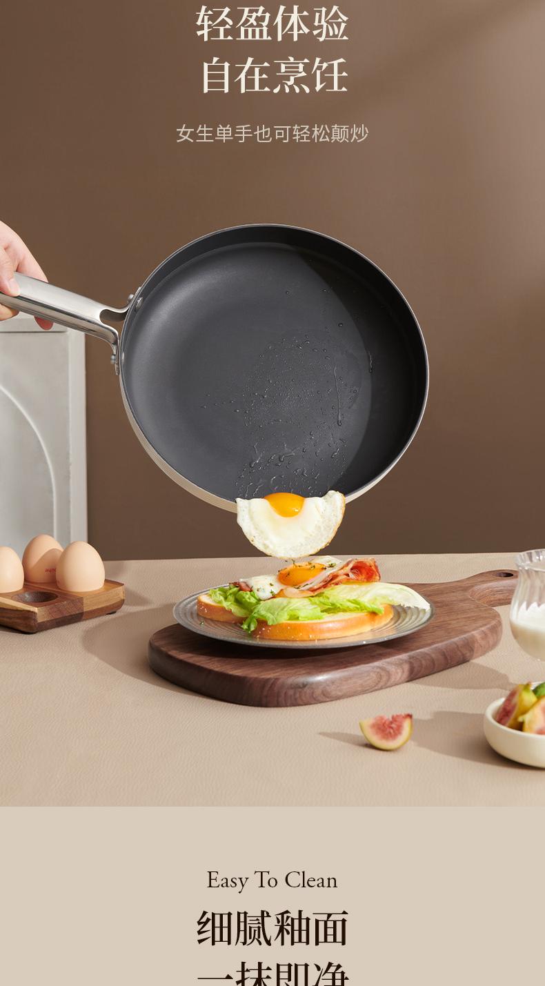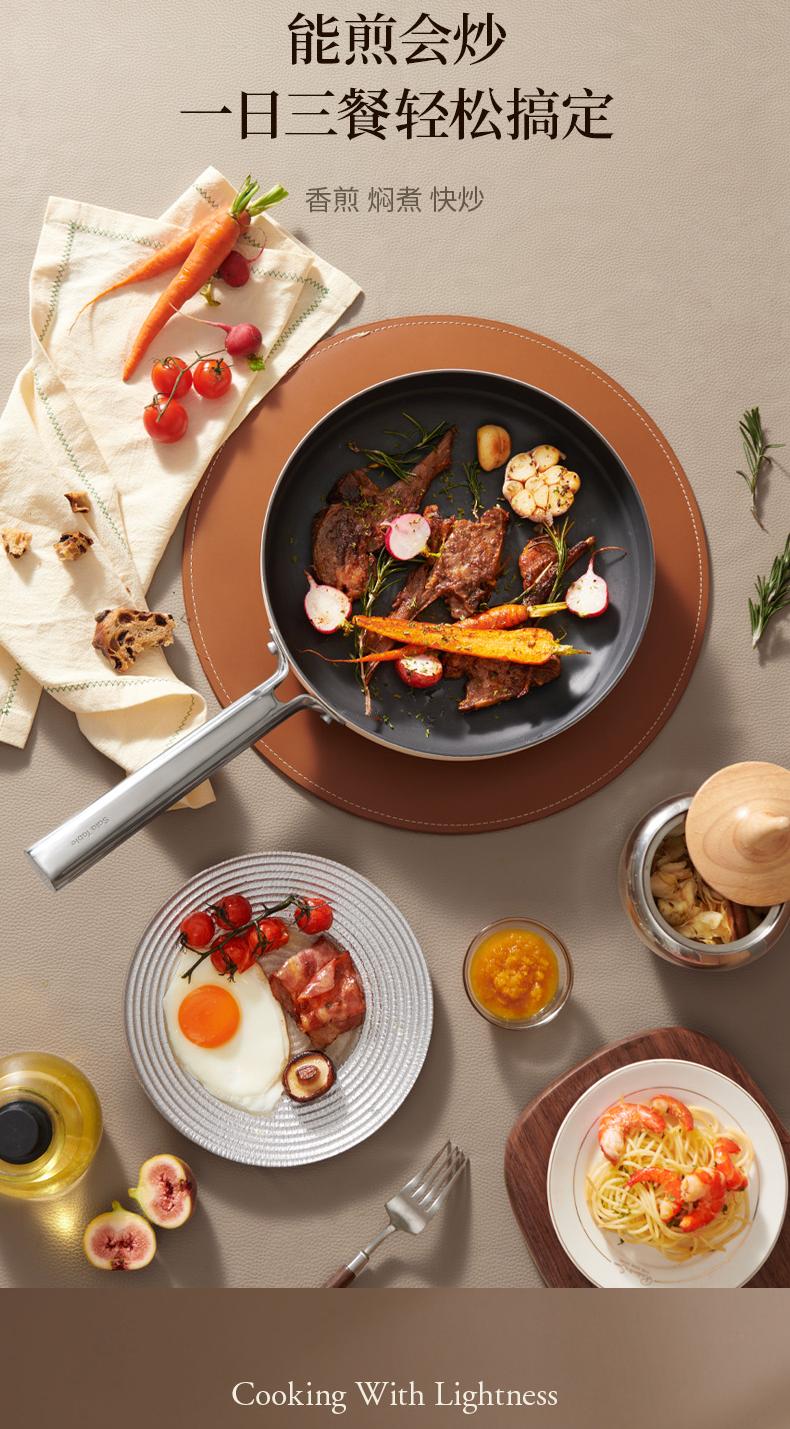 世星阳光)+WY苏拉食光 琴钛晶不粘煎锅弦乐白26cm SL-JL26E1 钛晶石 不粘层 光滑陶瓷表面 易清洗