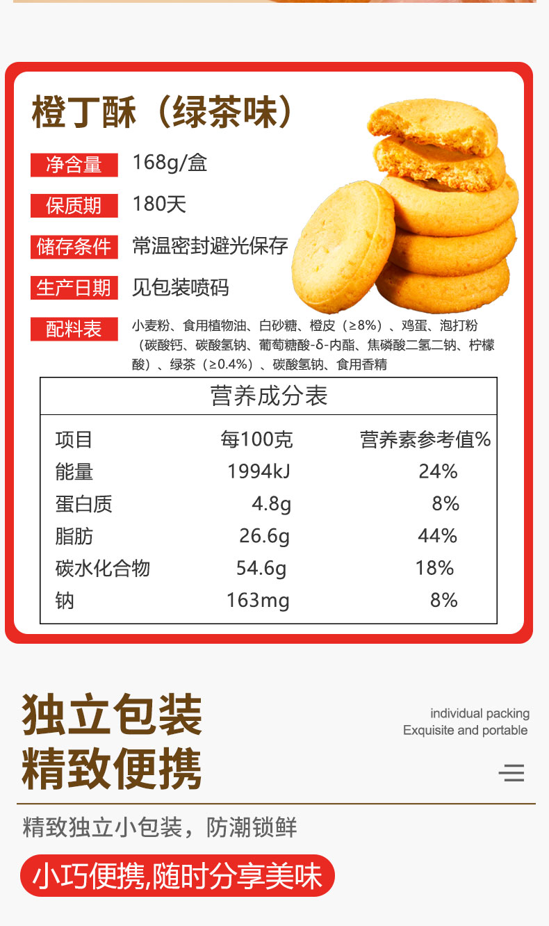 商品名称:(中科惠橙)屈姑橙丁酥绿茶味168g 糕点点心