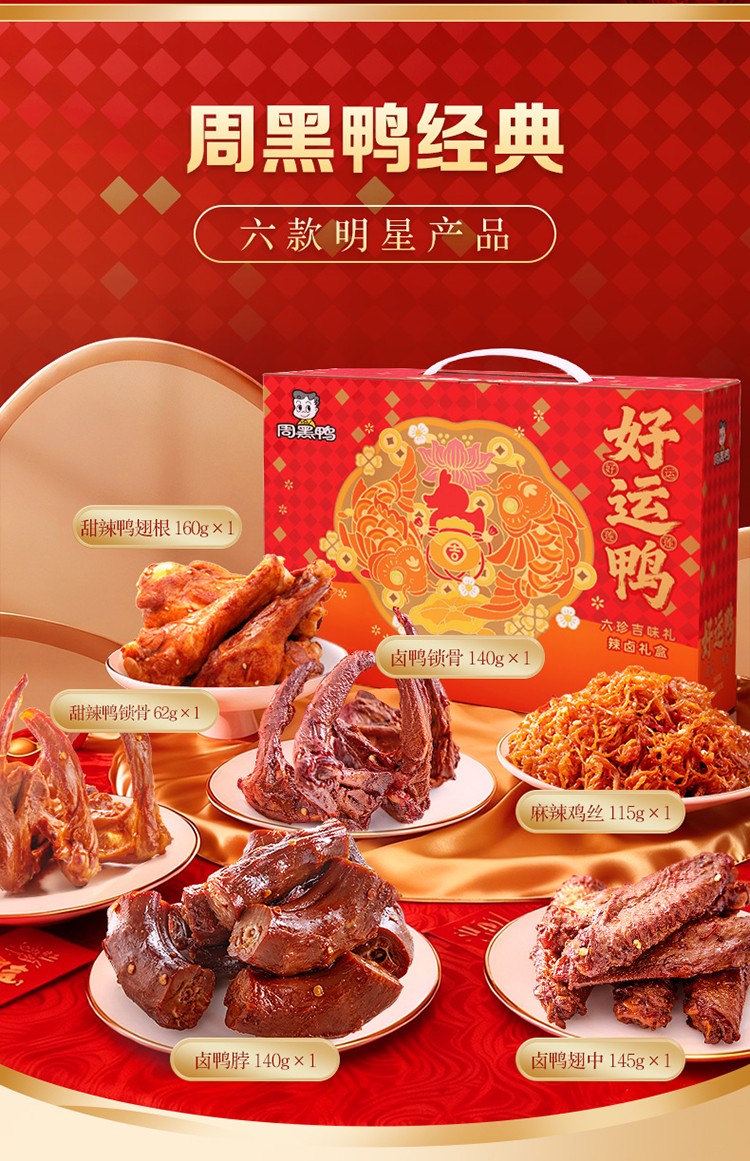 商品名称:(巨邦佑)R+周黑鸭好运鸭762g 鸭肉零食礼盒装 鸭锁骨真空锁鲜 卤味福利