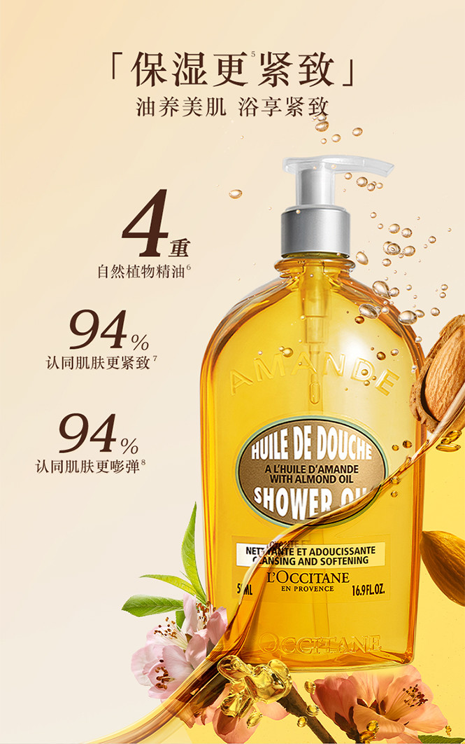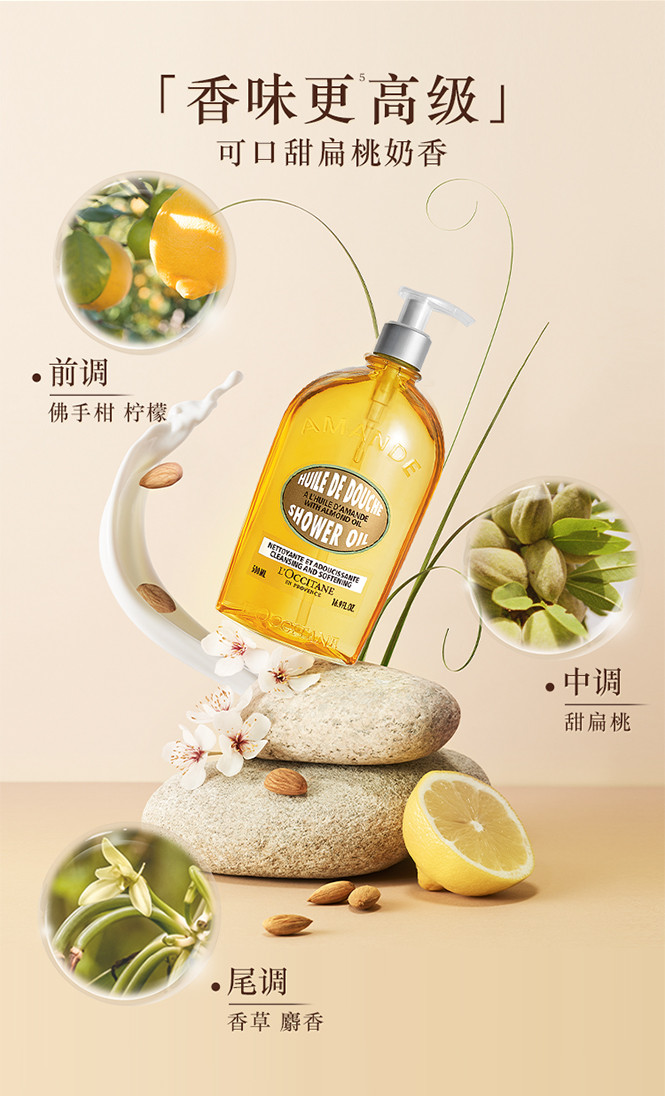 商品名称:(世星阳光)+欧舒丹 甜扁桃沐浴油 250ml 致滋养保湿可卸防晒
