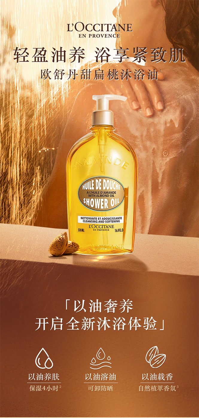 (世星阳光)+欧舒丹 甜扁桃沐浴油 250ml 致滋养保湿可卸防晒