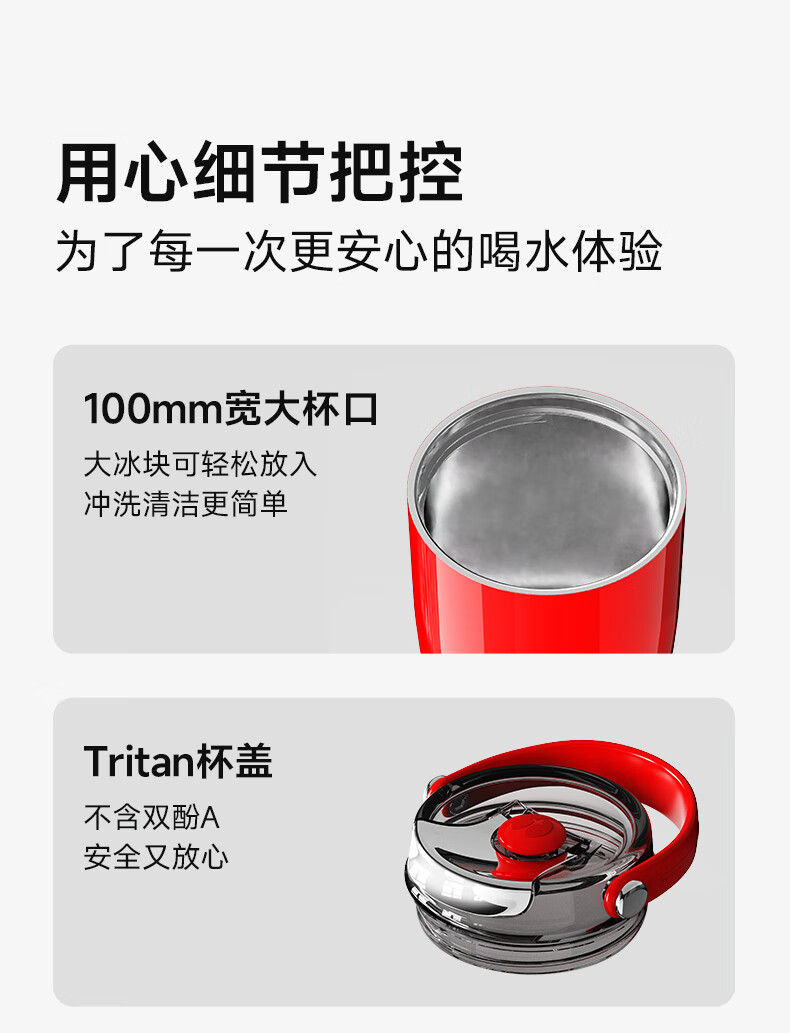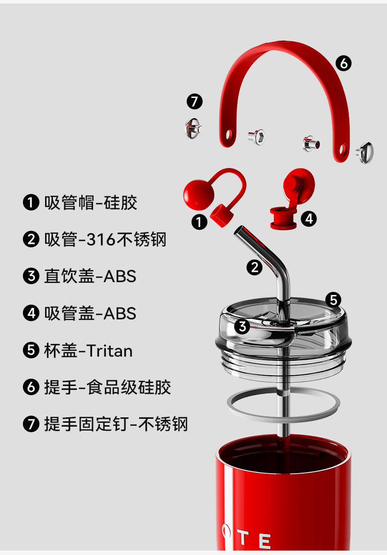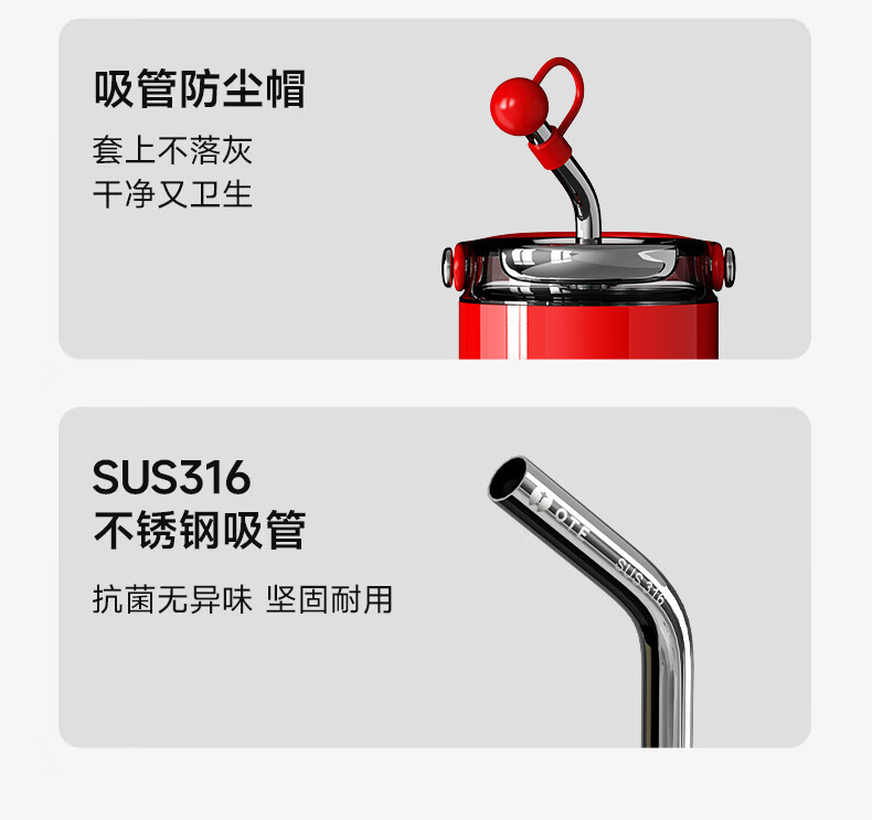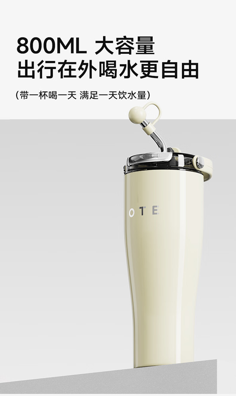 (巨邦佑)BJ+OTE吸管保温杯 800ml 欧堤巨无霸冰霸杯保温保冷杯大容量316不锈钢吸管水杯高颜值礼物