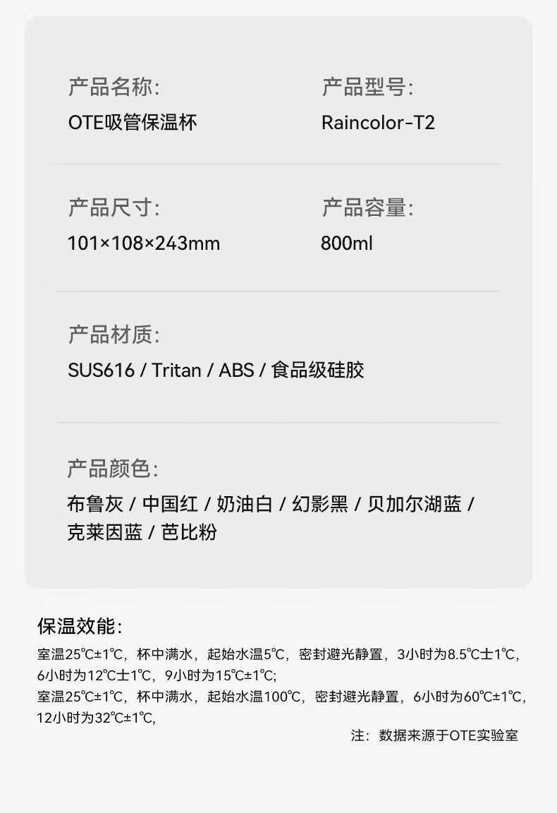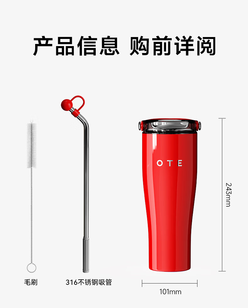 商品名称:(巨邦佑)BJ+OTE吸管保温杯 800ml 欧堤巨无霸冰霸杯保温保冷杯大容量316不锈钢吸管水杯高颜值礼物