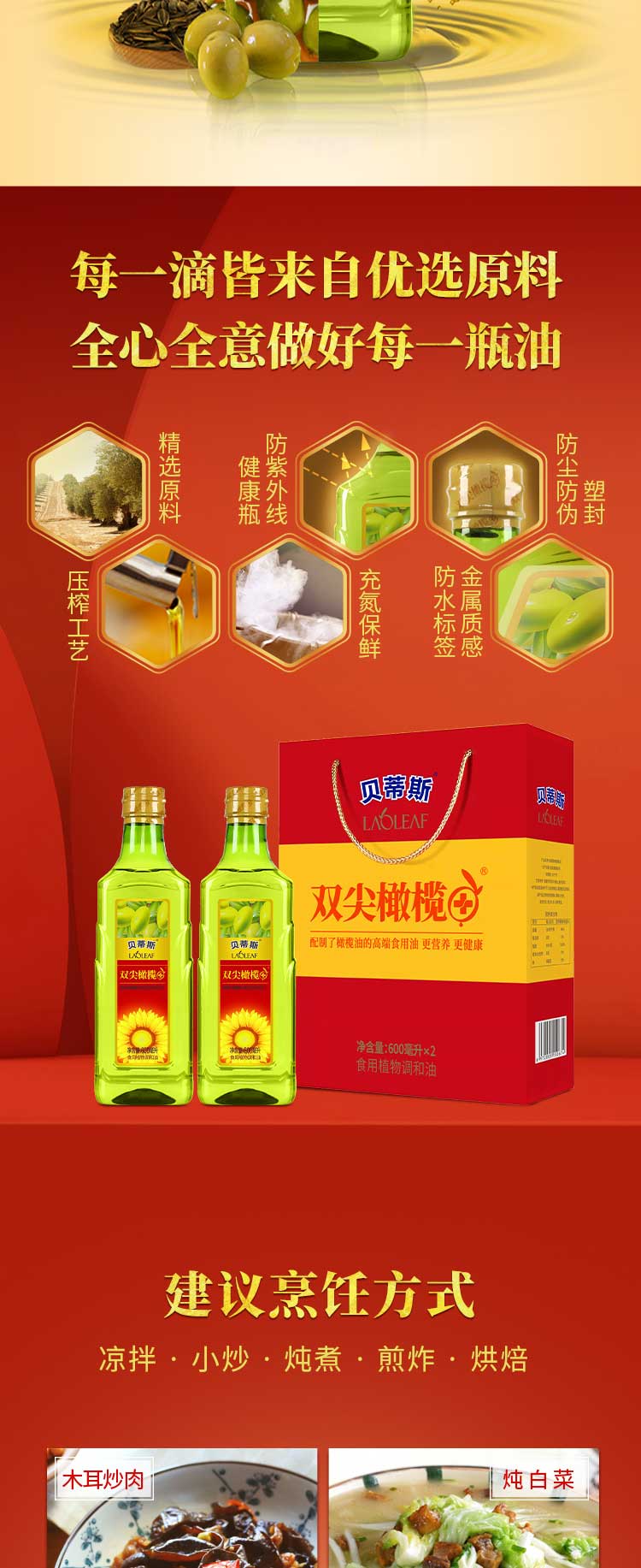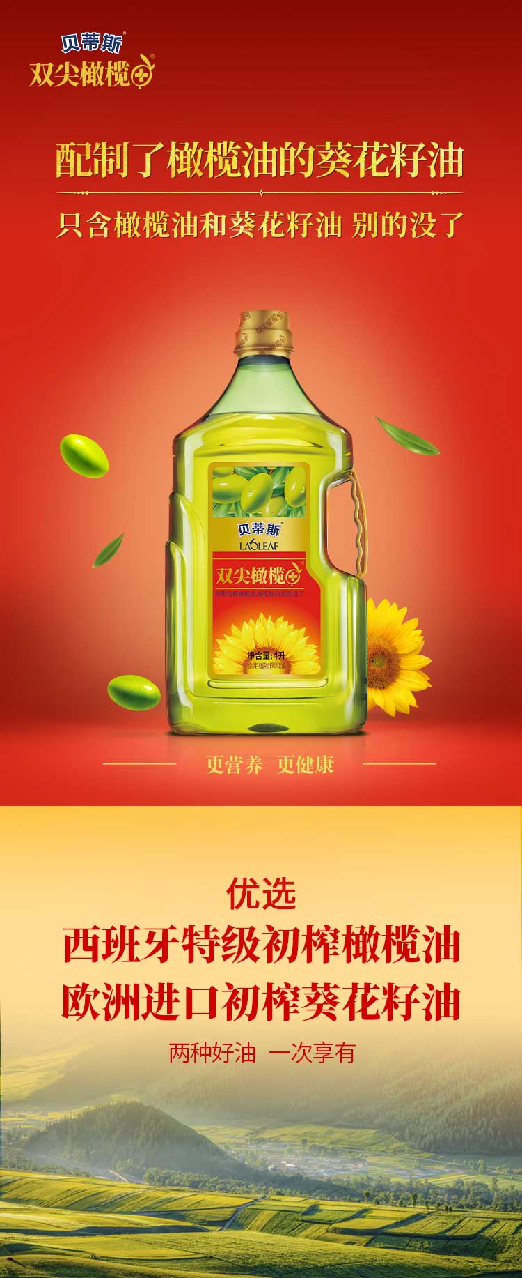商品名称:(世星阳光)+贝蒂斯 食用调和油(葵花橄榄)600ml*2礼盒 保真橄榄油 西班牙原瓶原装进口