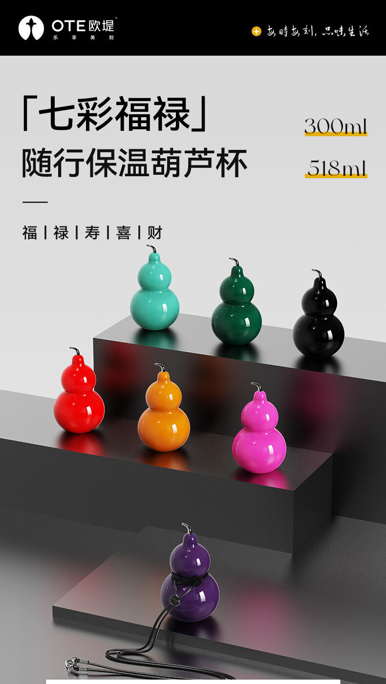 商品名称:(巨邦佑)BJ+OTE葫芦杯 518ml 欧堤保温杯316不锈钢水壶便携户外随行茶杯水杯高颜值礼物