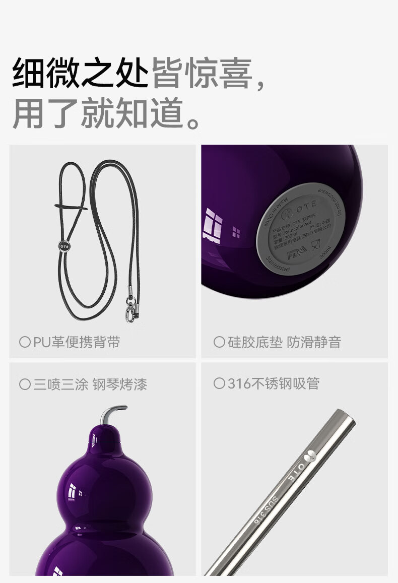 (巨邦佑)BJ+OTE葫芦杯 518ml 欧堤保温杯316不锈钢水壶便携户外随行茶杯水杯高颜值礼物
