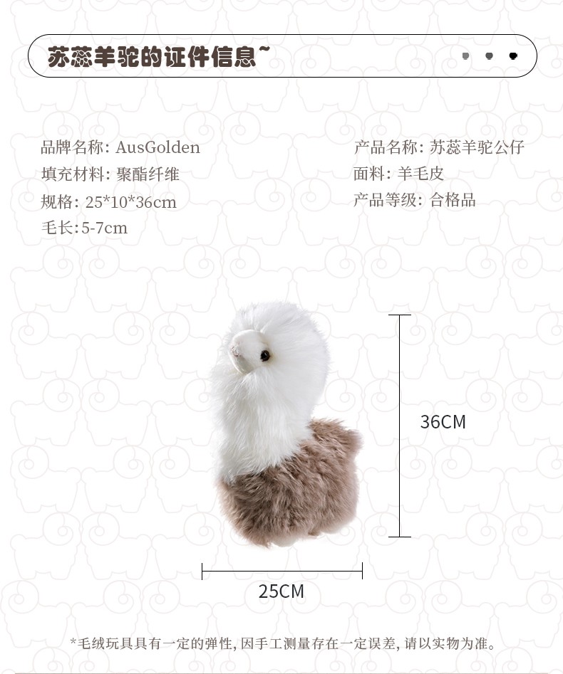 商品名称:(巨邦佑)BJ+AusGolden 苏蕊长毛羊驼公仔 面料:100%澳洲羊毛皮 公仔抱枕仿真小羊驼毛绒玩具情侣生日礼物