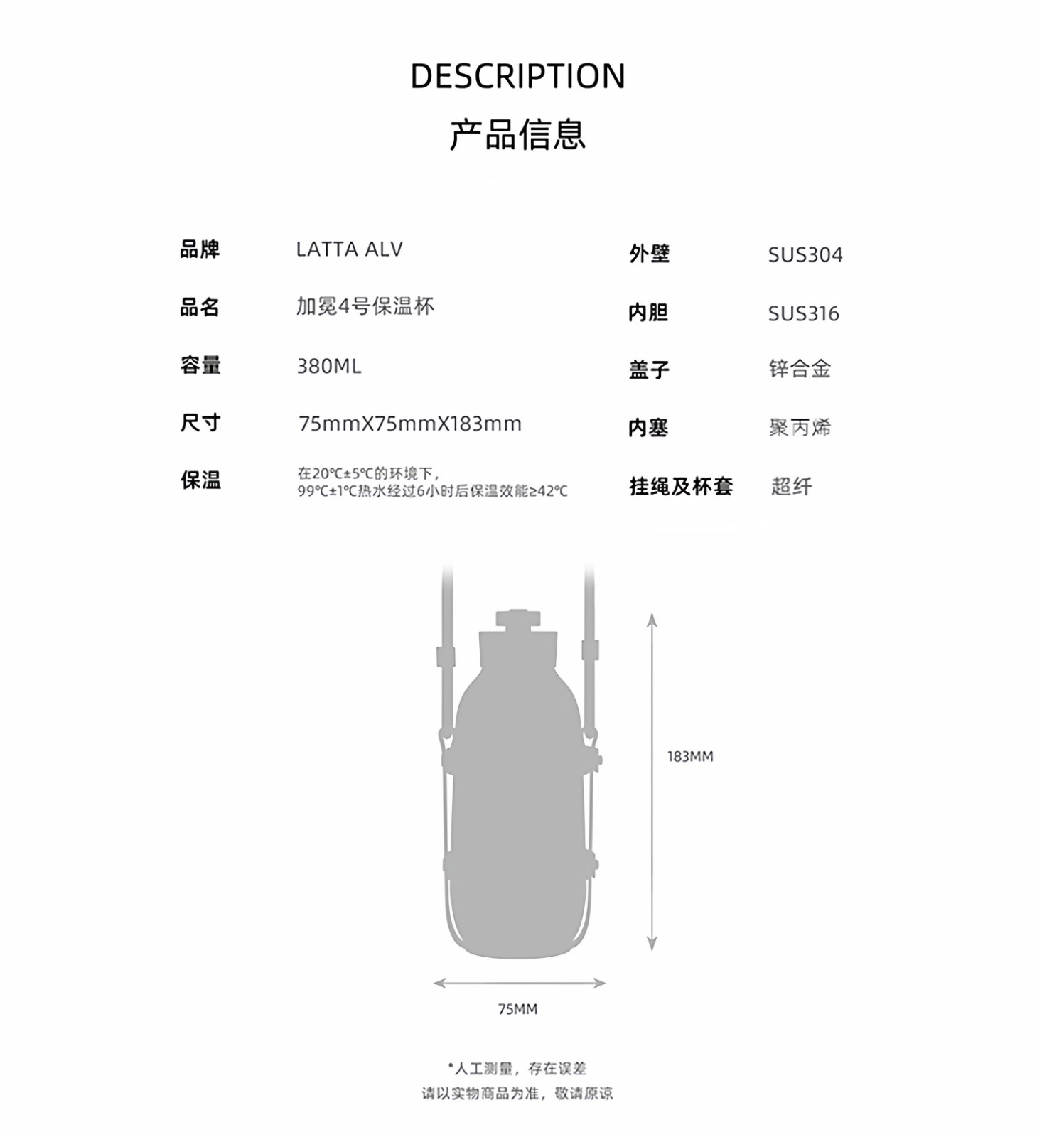 商品名称:(巨邦佑)BJ+LATTA ALV 沙库里加冕4号保温杯 380ml 高颜值女款儿童水杯子生日礼物
