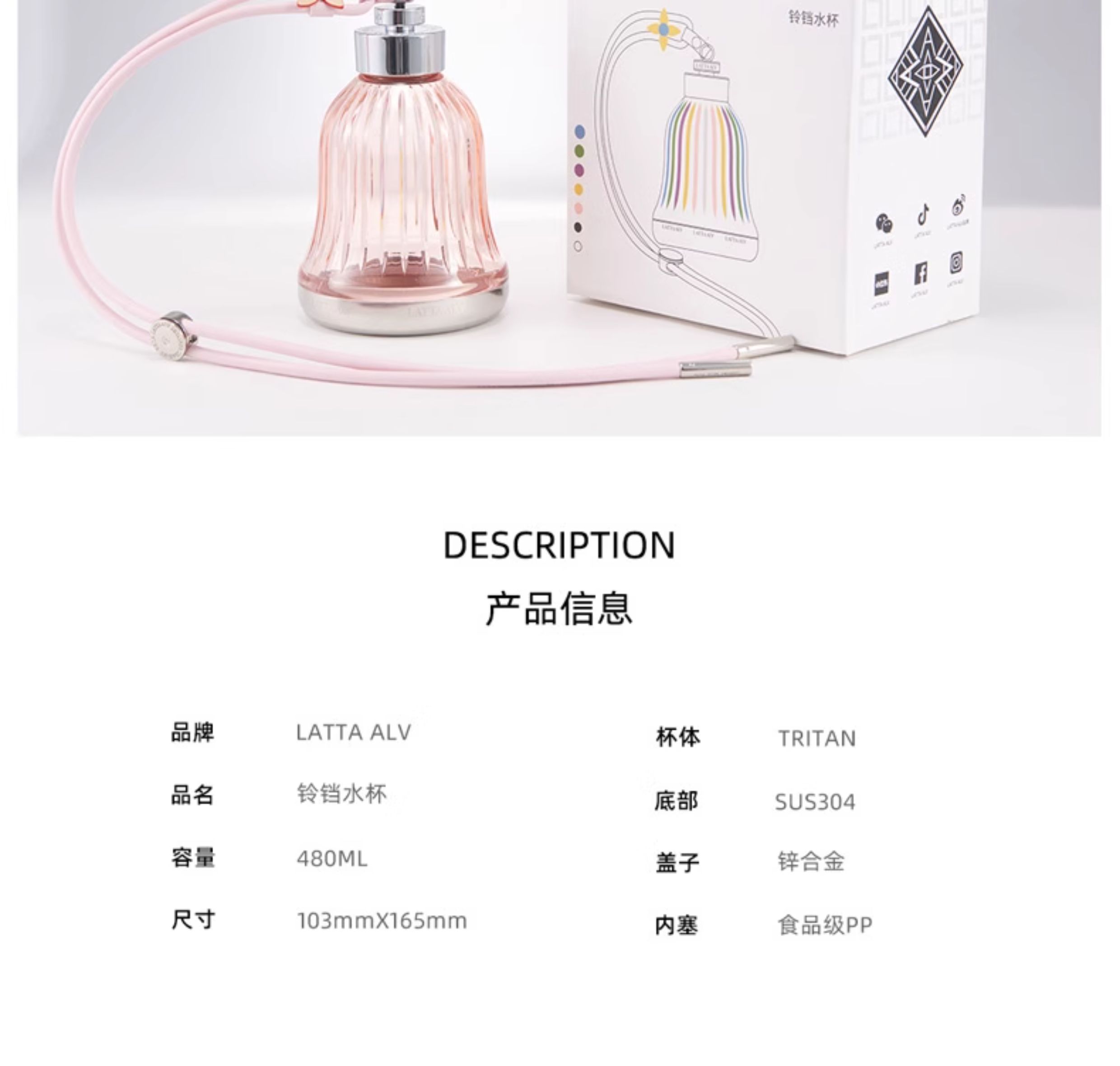 商品名称:(巨邦佑)BJ+LATTA ALV 沙库里铃铛水杯 480ml 多色可选夏季水杯女生高颜值男新款大容量儿童杯子生日礼物