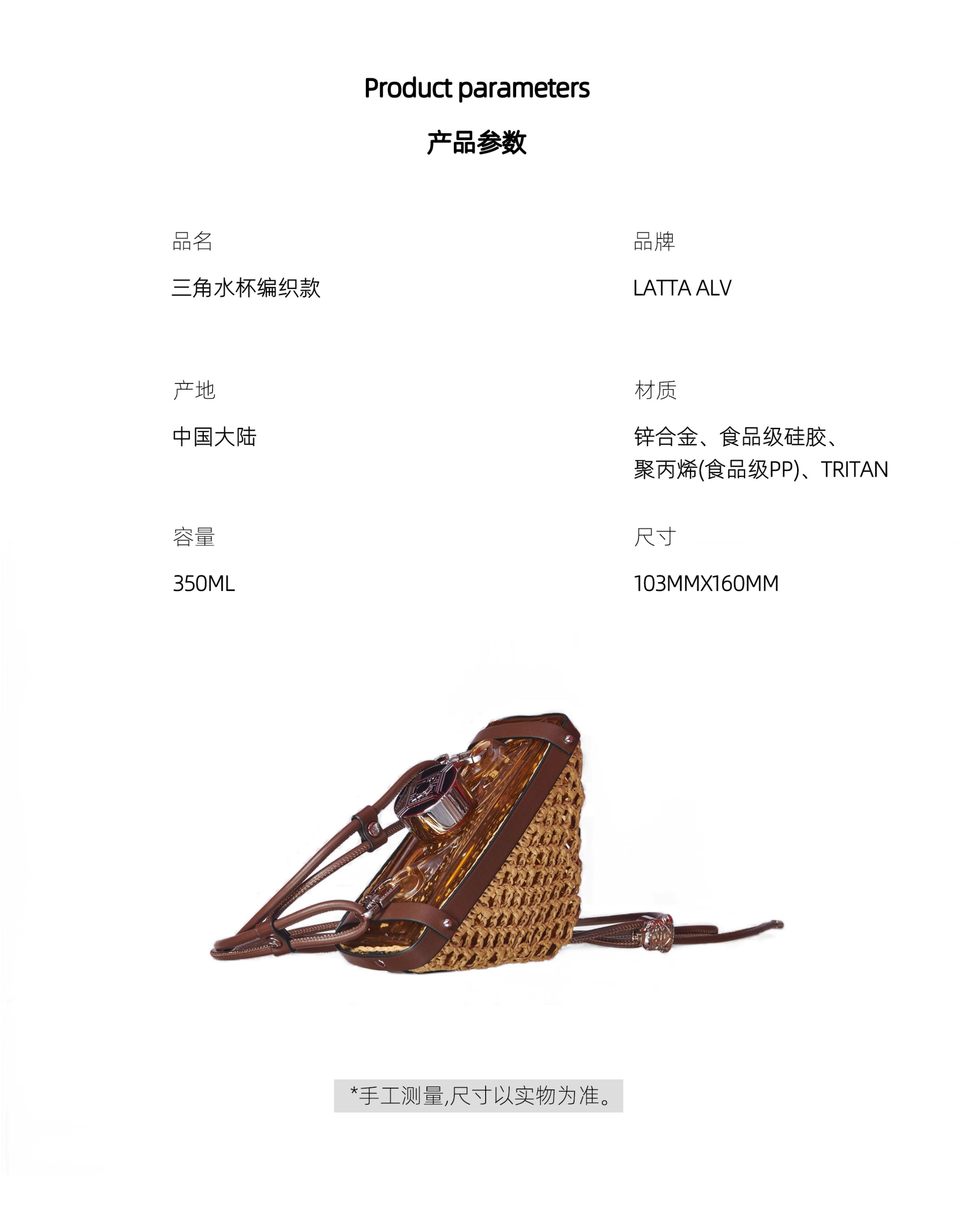 商品名称:(巨邦佑)BJ+LATTA ALV 编织三角水杯 350ml 时尚水杯子日常随身杯户外高颜值送女朋友送闺蜜礼物