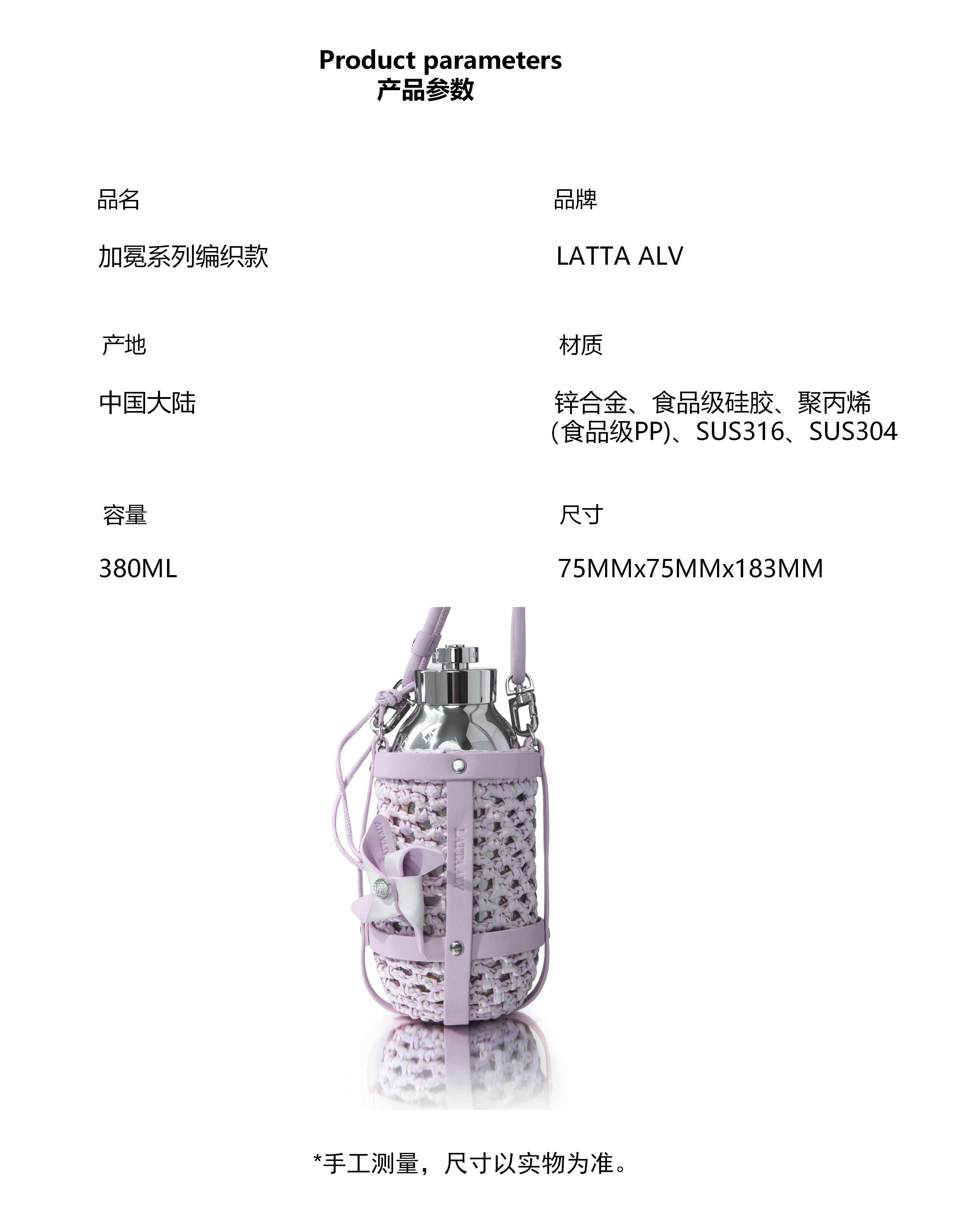 商品名称:(巨邦佑)BJ+LATTA ALV 手工PPT草编织加冕保温杯 380ml 粉色保温户外咖啡杯高颜值女神款明星节日生日礼物